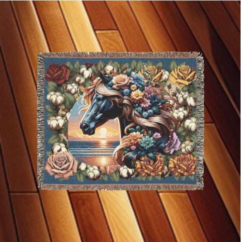Blanket 80"x60" - Rose Garden- Woven Blanket with Fringe