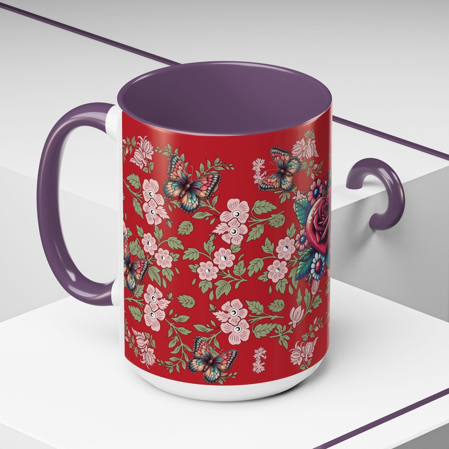 Coffee Mug Horses, Flowers, and Butterflies Mug