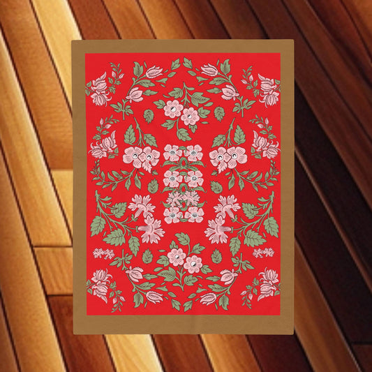 Floral Velveteen Plush Blanket - Pink Flowers Red Background