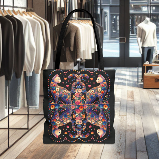 Mosaic Loving Cat Black Tote Bag (AOP)
