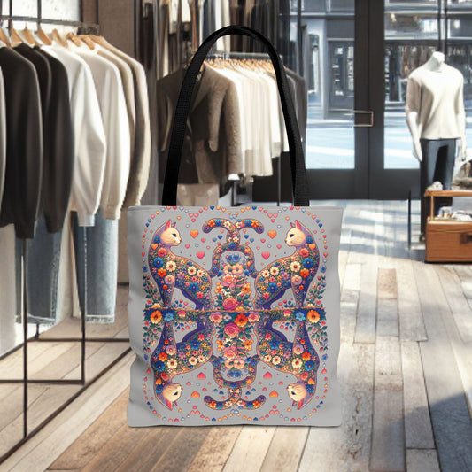 Mosaic Loving Cat Light Gray Tote Bag (AOP)