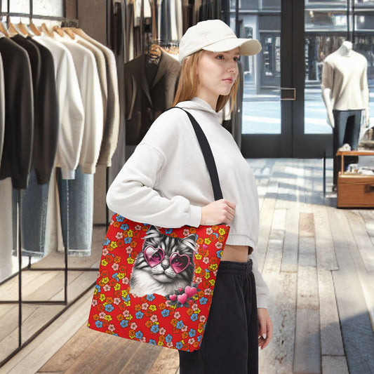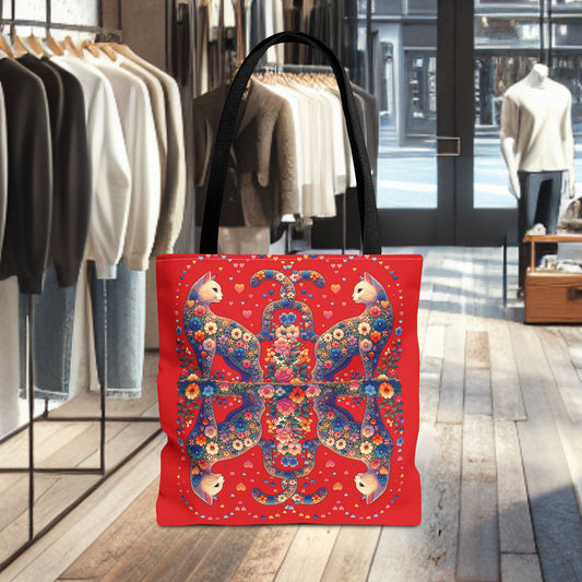 Loving Cat Flower Mozaic Tote Bag Dark Red