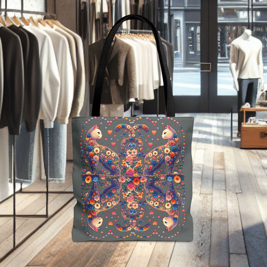 Mosaic Loving Cat Dark Gray Tote Bag (AOP)