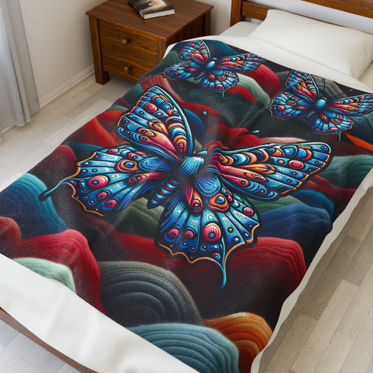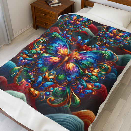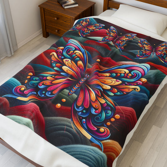 Pritty Butterfly Velveteen Plush Blanket — Cozy Colored Butterfly Throw