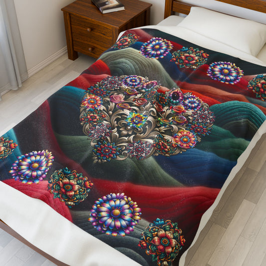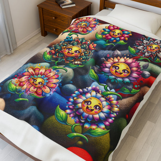 Happy Flowers Velveteen Plush Blanket - Happy Flowers Cozy Throw