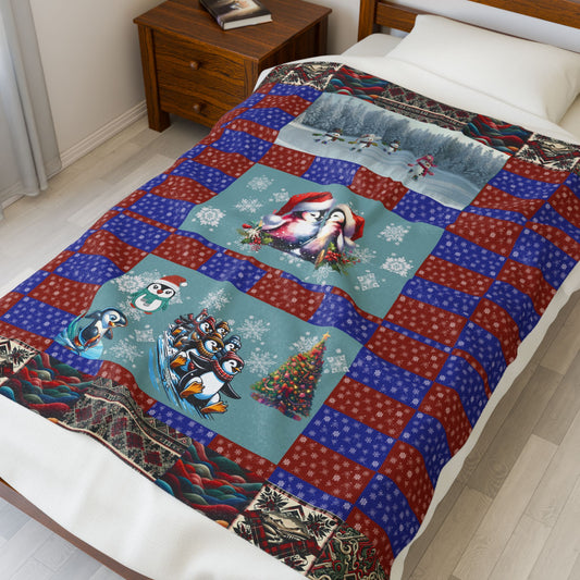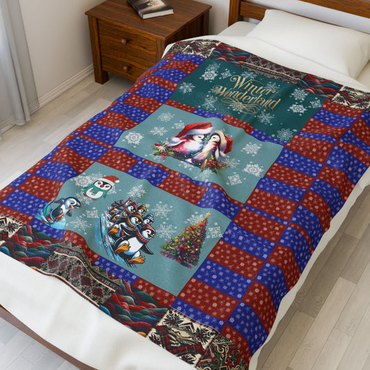 Winter Wonderland Velveteen Plush Blanket — Penguins at Play & In Love Throw