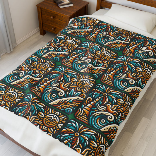 Tropical Sunrise Velveteen Plush Blanket — Cozy Tropical Throw