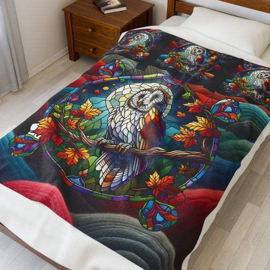 Stain Glass Owl Velveteen Plush Blanket — Cozy Stained Glass Owl Throw