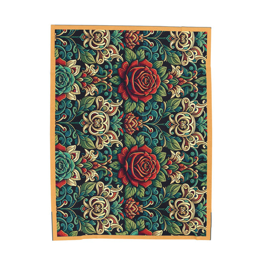 Floral Velveteen Blanket - with a Gray Background and a Gold Border