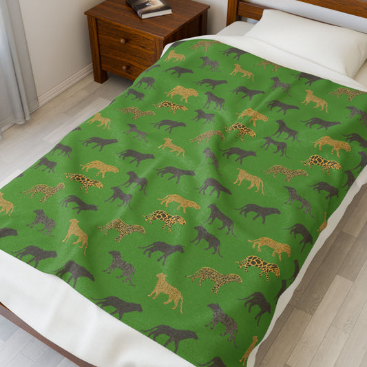 Animal Print Green Velveteen Plush Blanket