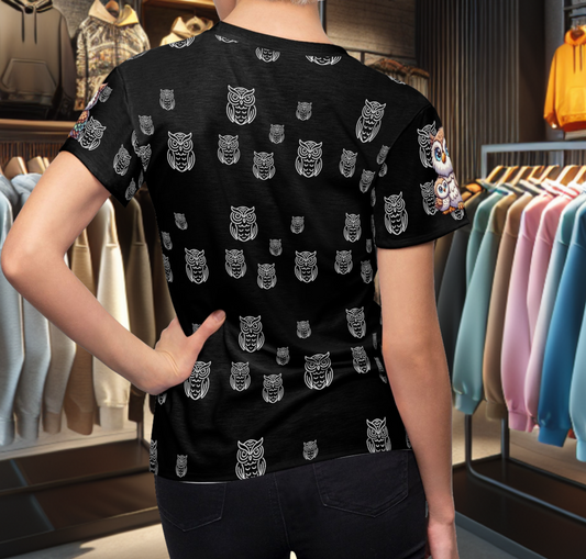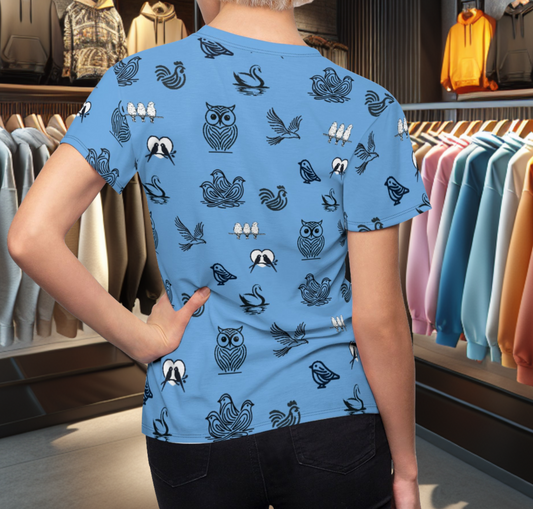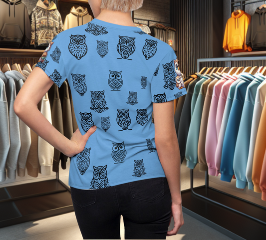 Adorable Owl Print Women's Blue Tee - Cute Owl Shirt for Animal Lovers