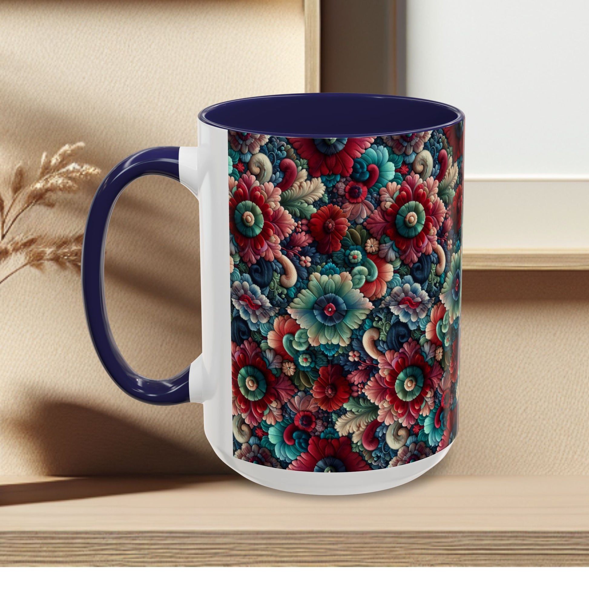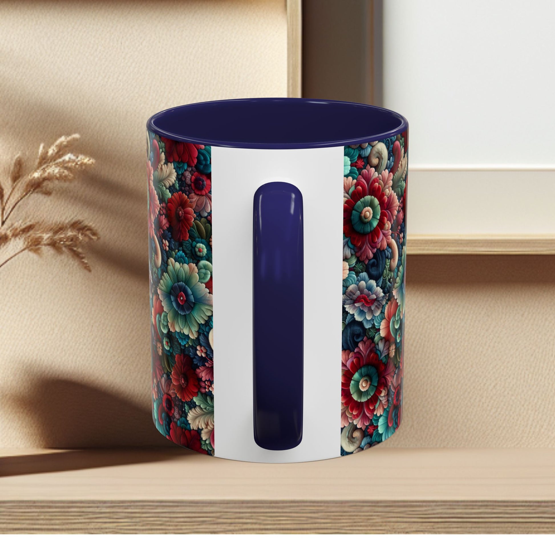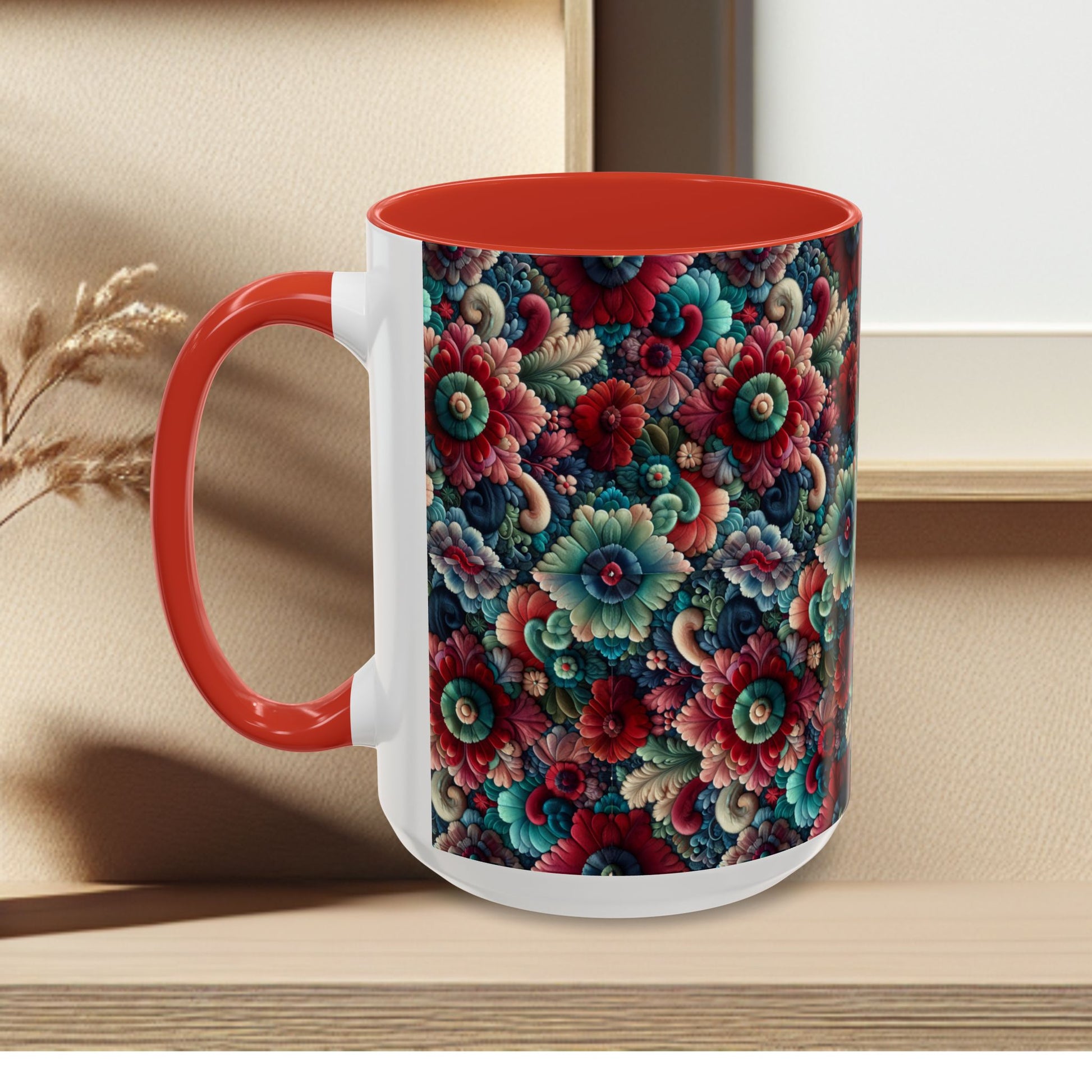 Beautiful Floral Pattern Accent Coffee Mug — Vibrant Vintage Bloom Design (11/15oz)