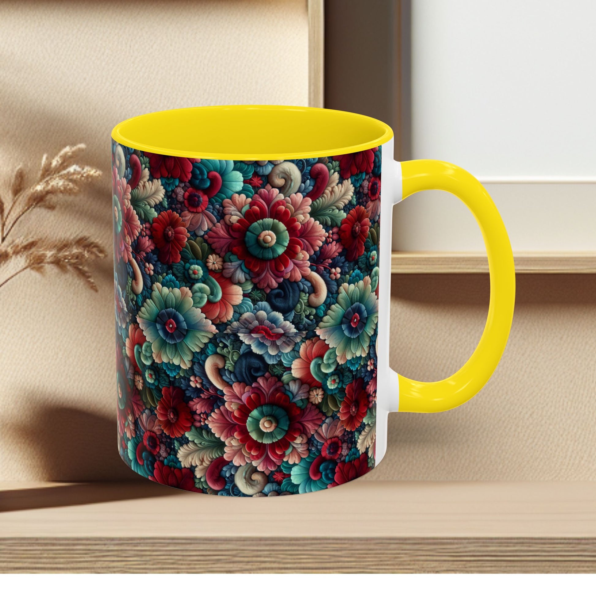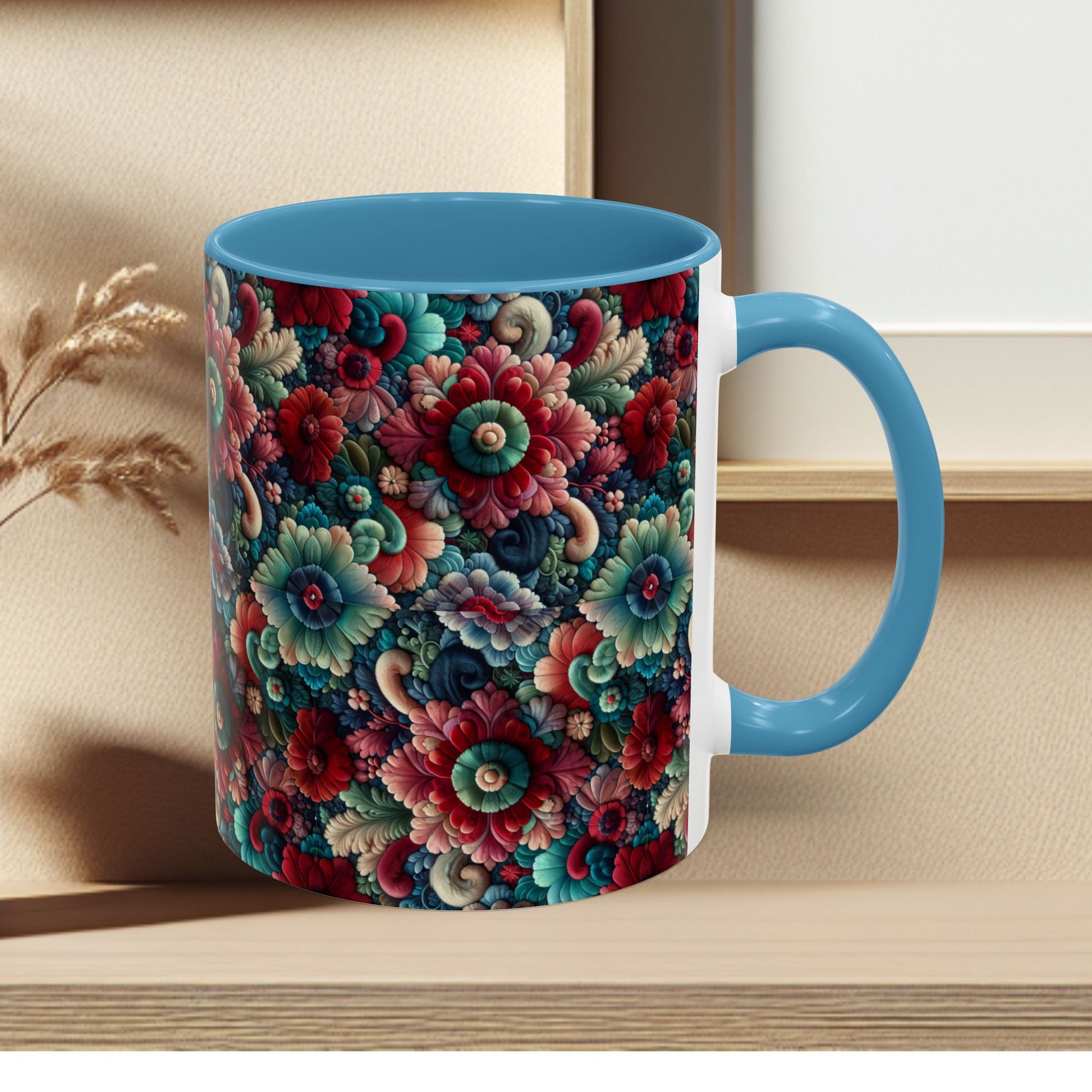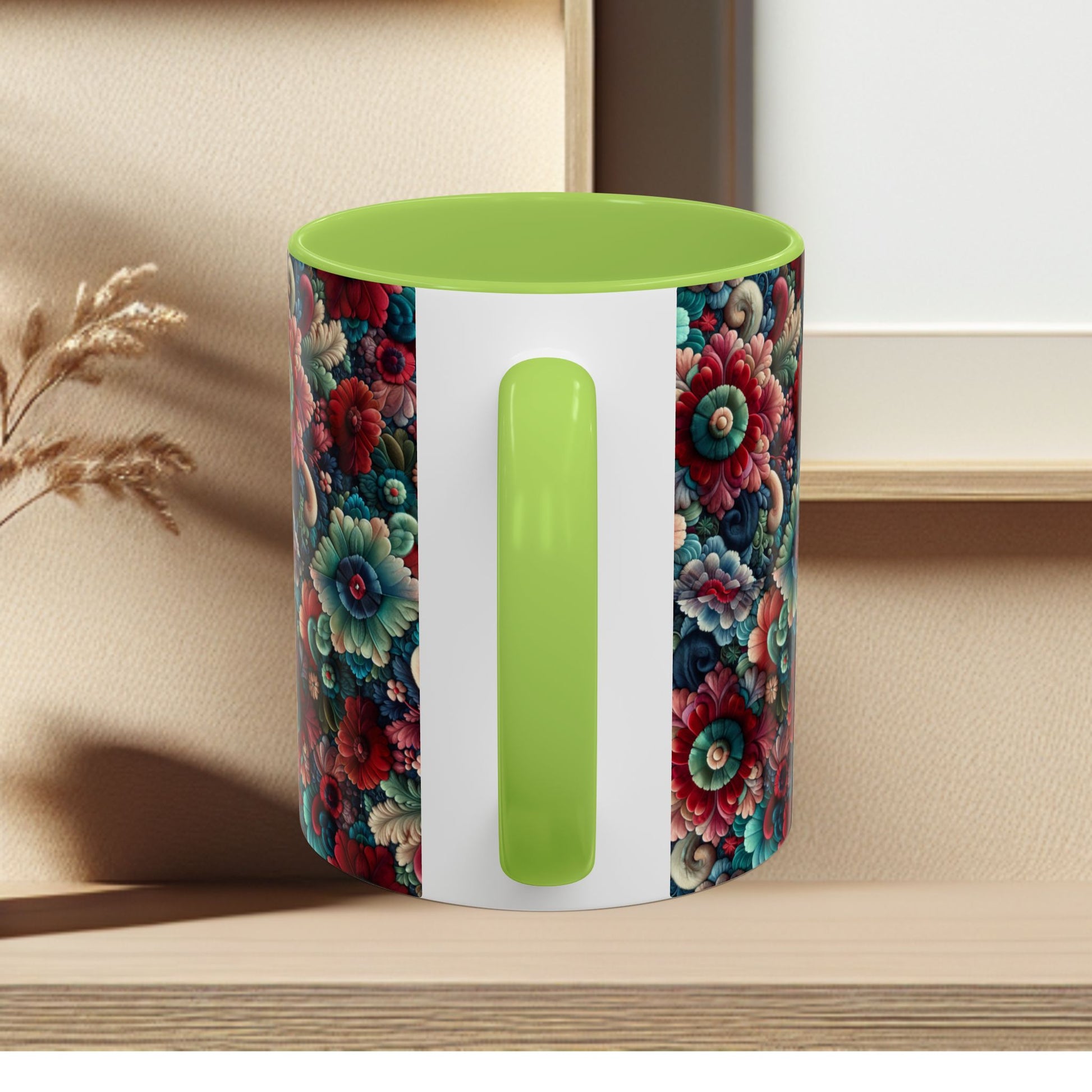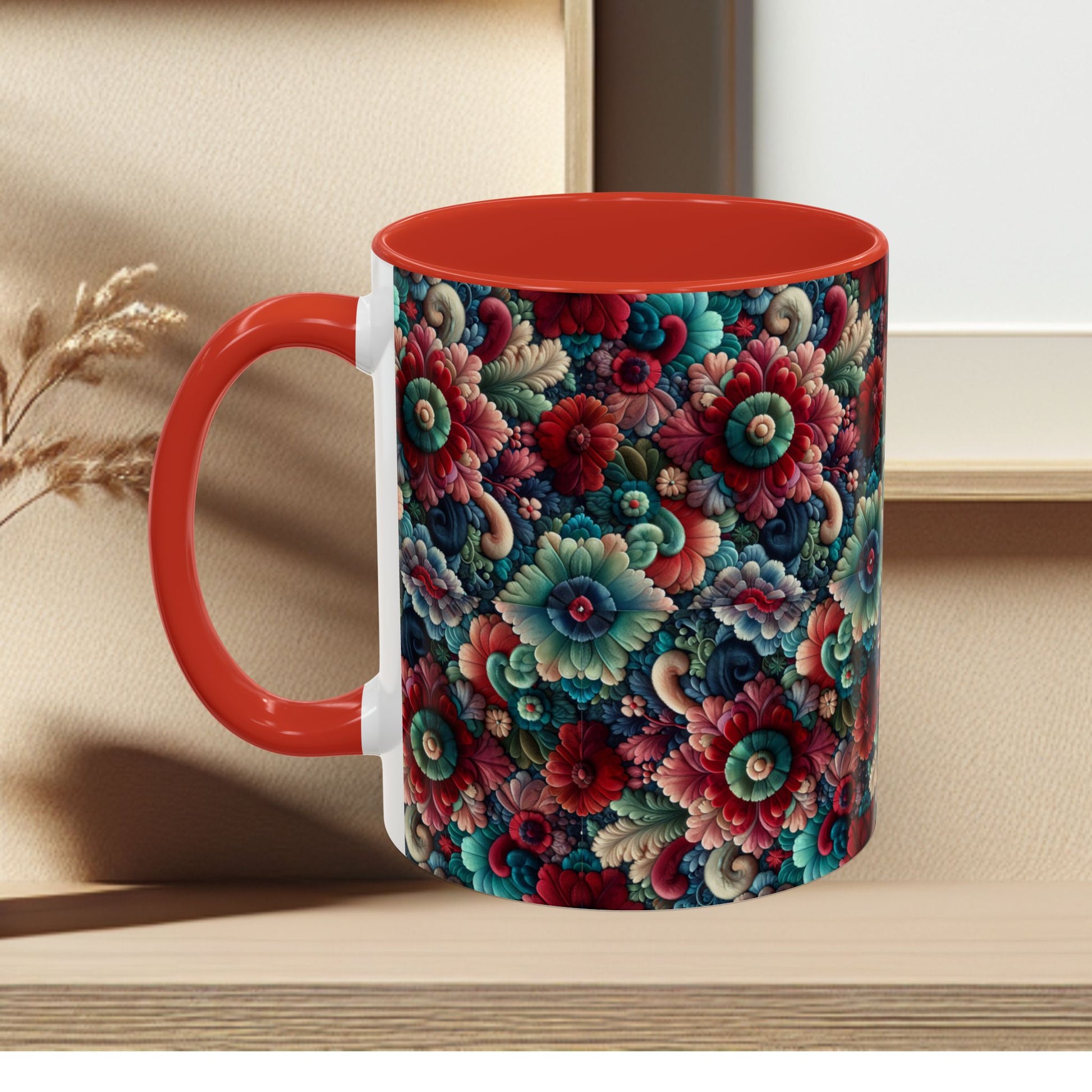 Beautiful Floral Pattern Accent Coffee Mug — Vibrant Vintage Bloom Design (11/15oz)