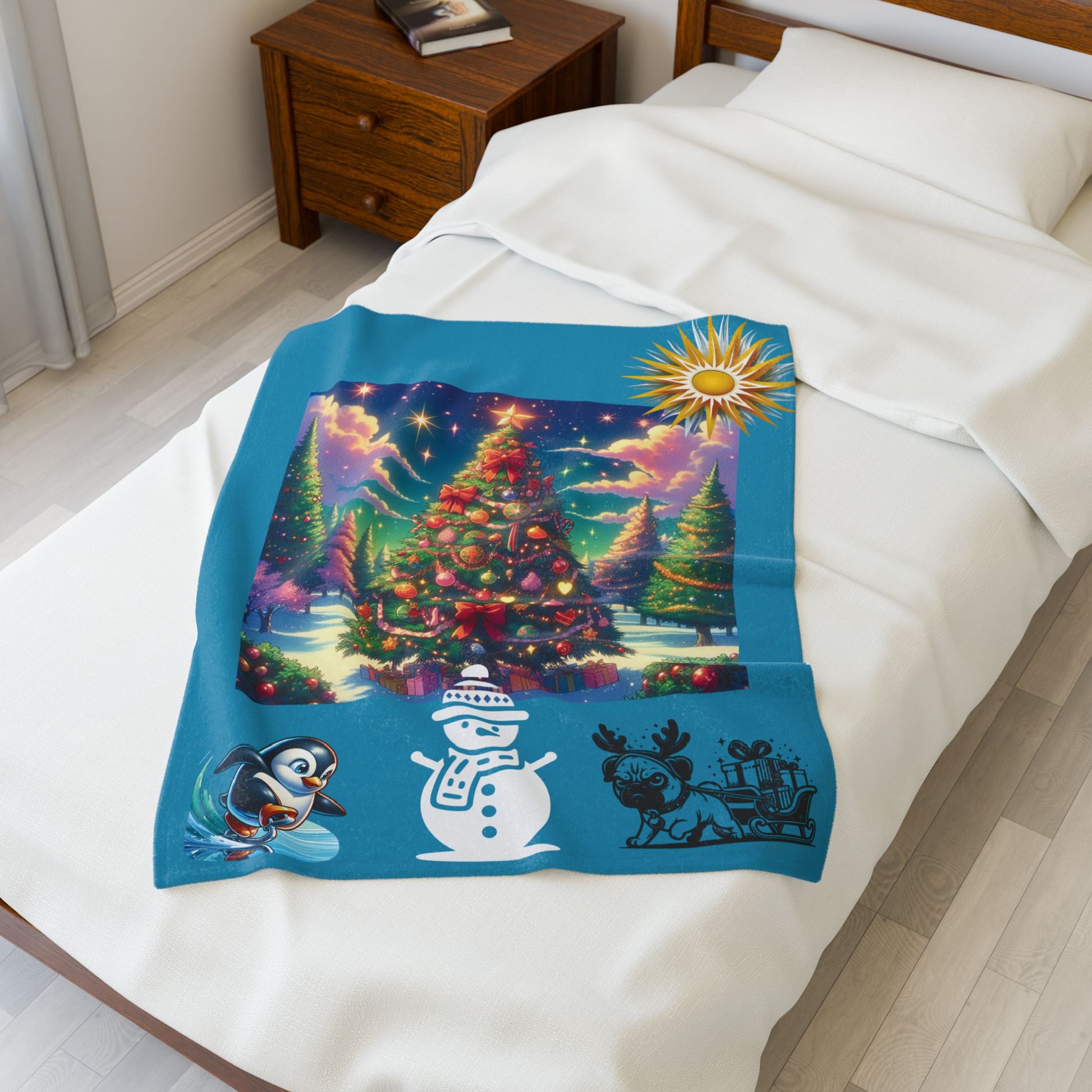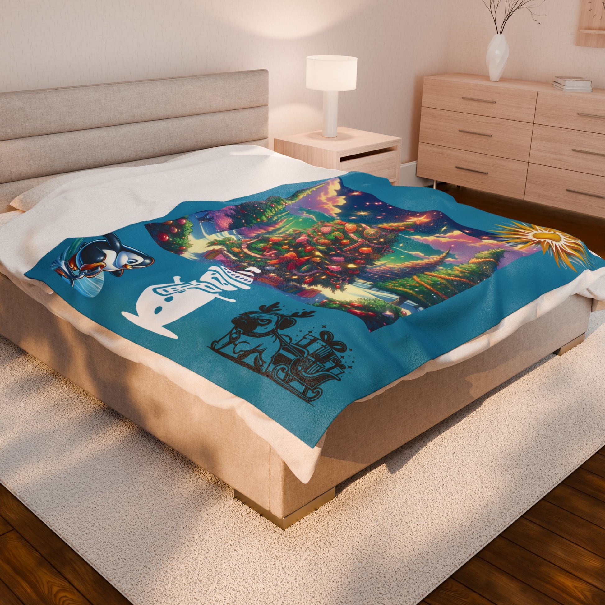 Experience the magical atmosphere of Christmas in the Forest with this Velveteen Plush Blanket. Perfect for cozying up during the holiday season, this double-stitched blanket is made of durable polyester that retains its shape and dries quickly. Ideal for adults, this blanket showcases a vibrant print on one side, adding a festive touch to your home decor.