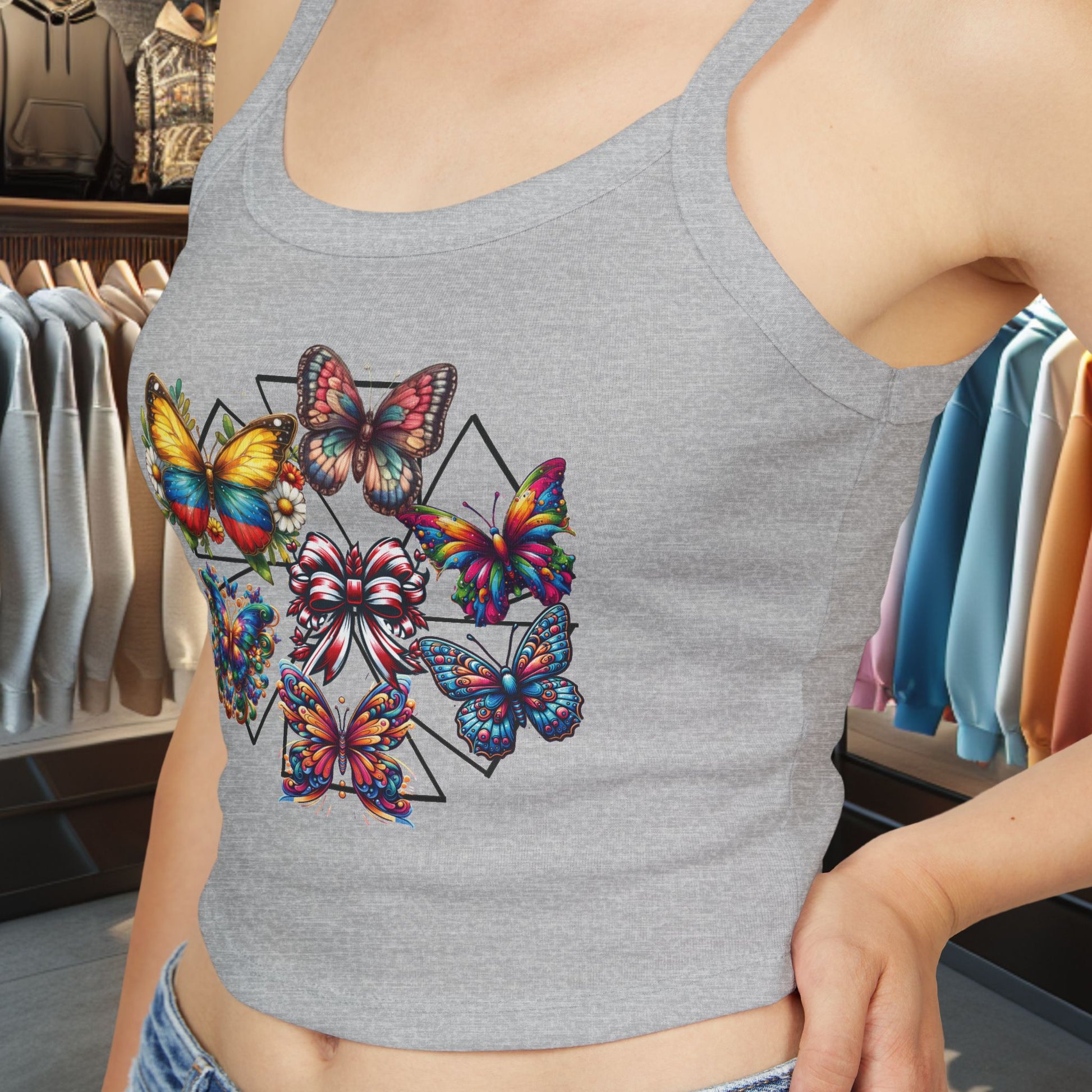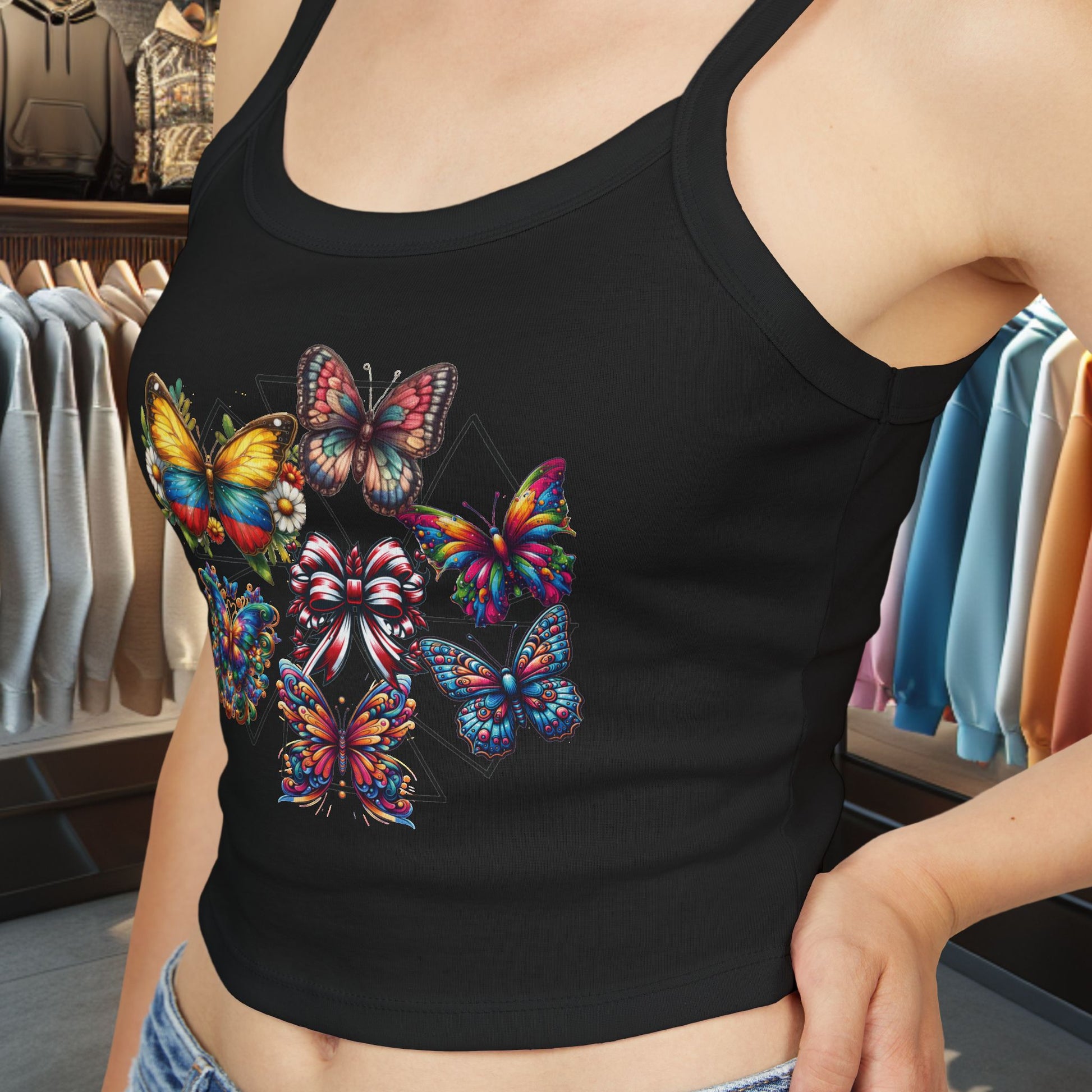 Colorful Butterfly Print Tank Top perfect for summer fashion and casual wear. The Boho style design makes it a great gift for her. This tank top is ideal for women who love vibrant prints and comfortable clothing. Perfect for beach vacations, music festivals, and outdoor gatherings.
