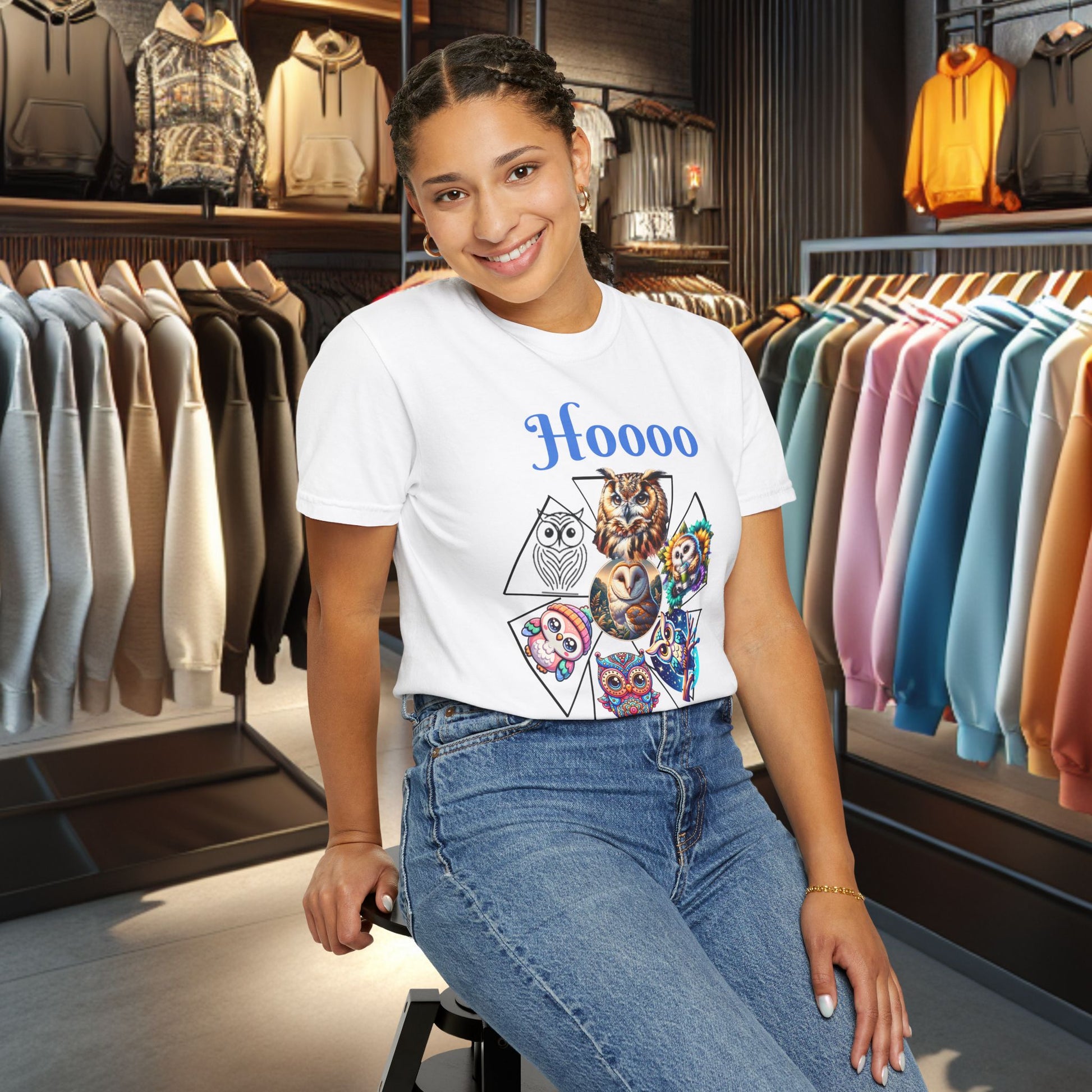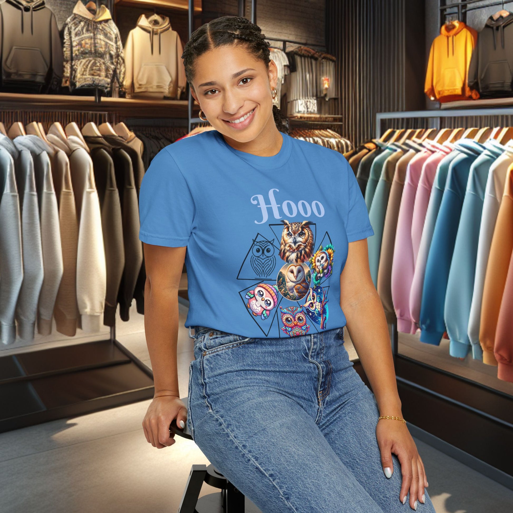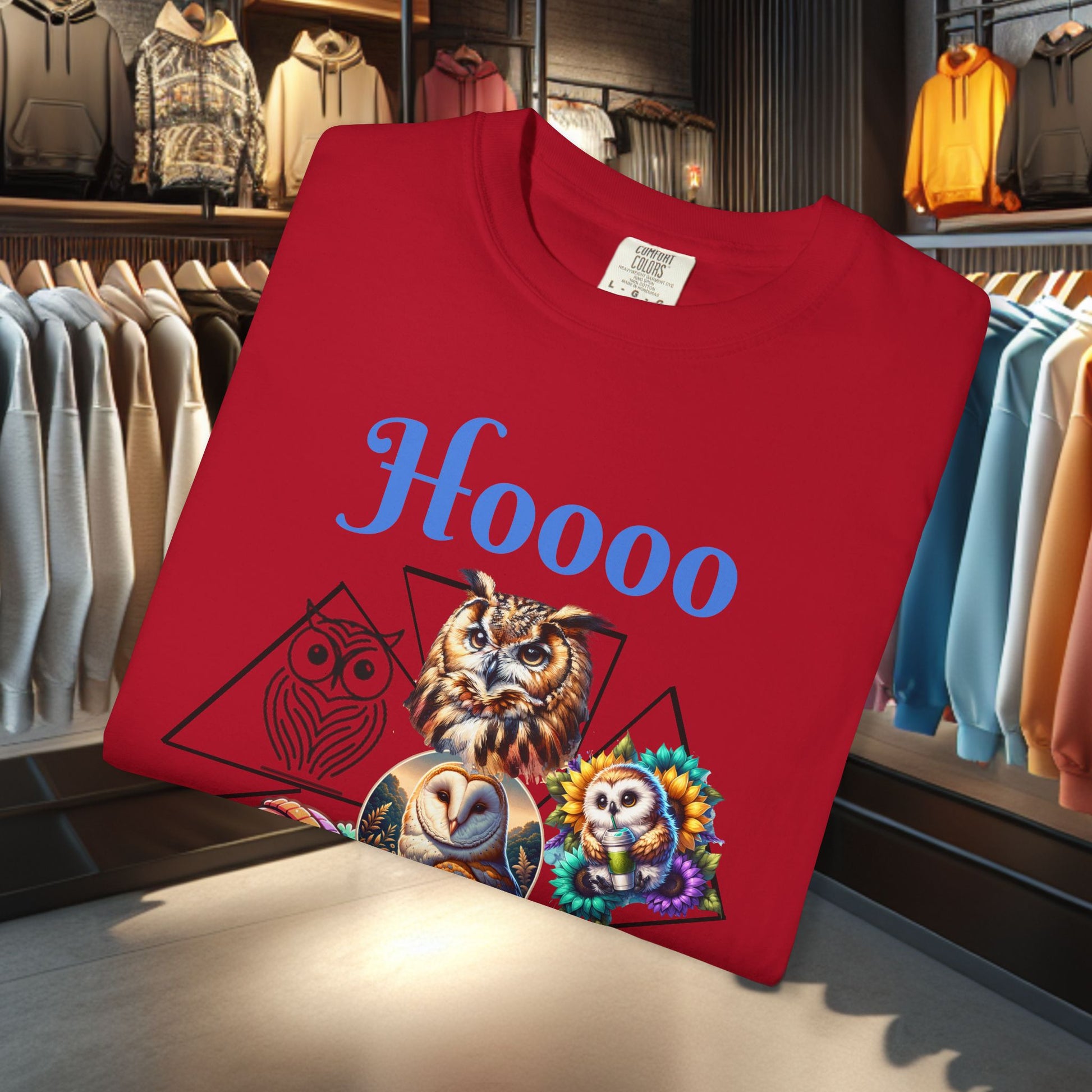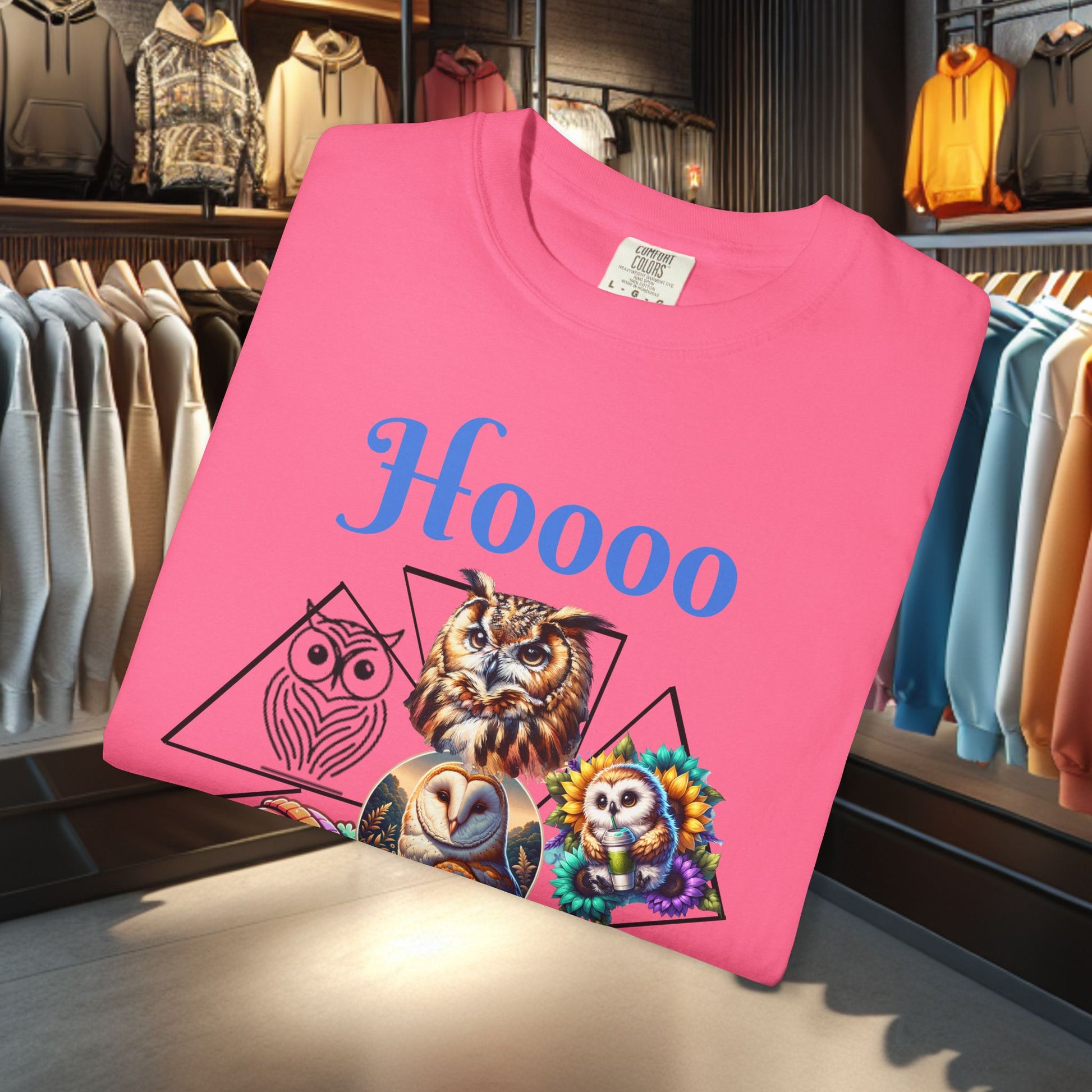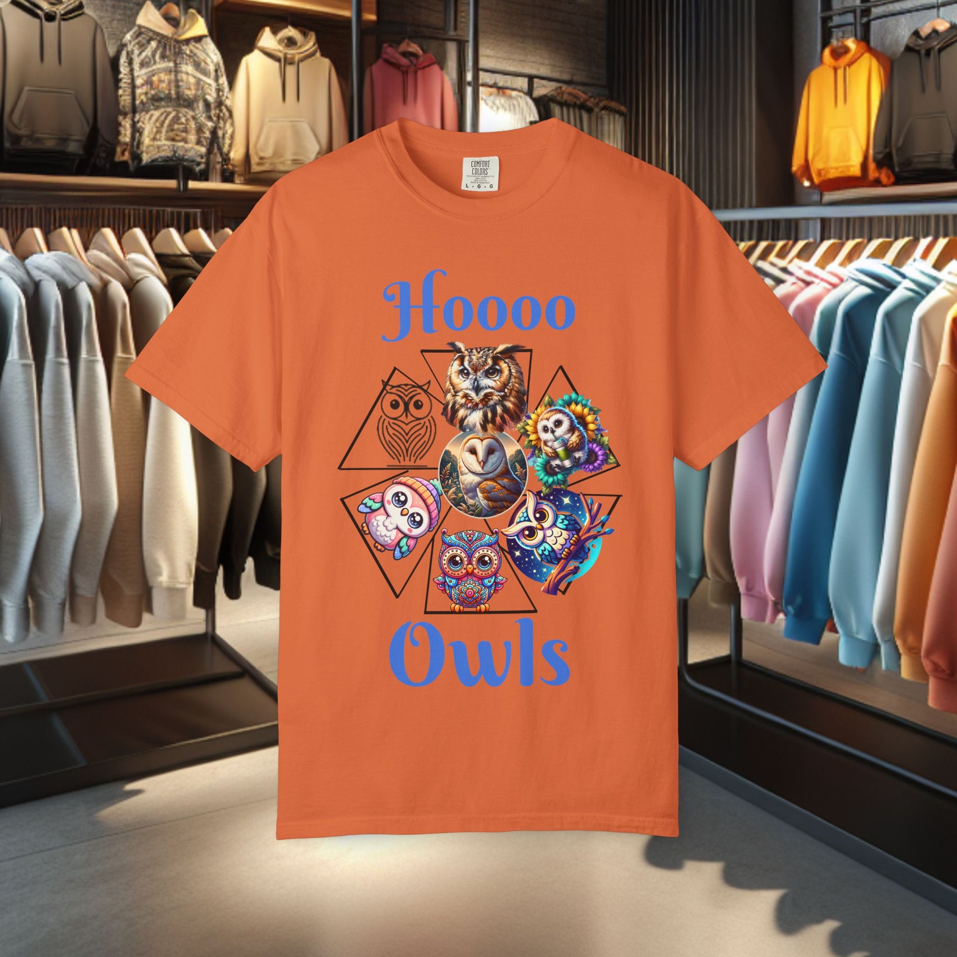 Colorful Owl Design T-Shirt, perfect for wildlife lovers and nature enthusiasts. This casual animal tee is a fun graphic shirt that adds a playful touch to any outfit. Suitable for everyday wear or as a gift for someone who loves nature.