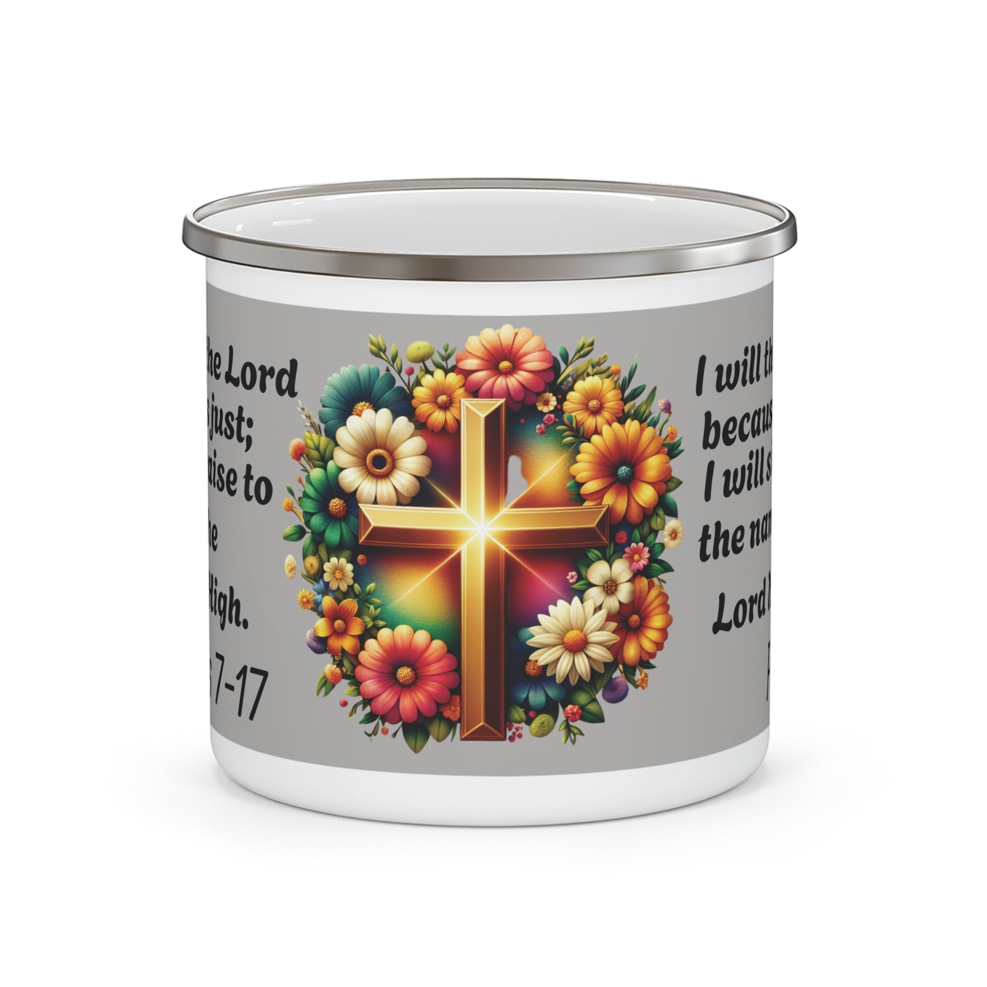 This Enamel Mug featuring Psalms 7-17 exudes a sense of peace and comfort, making it ideal for morning coffee or evening tea. Perfect for campers, outdoor enthusiasts, and those seeking spiritual inspiration. Great gift for religious holidays, camping trips, and outdoor adventures.
