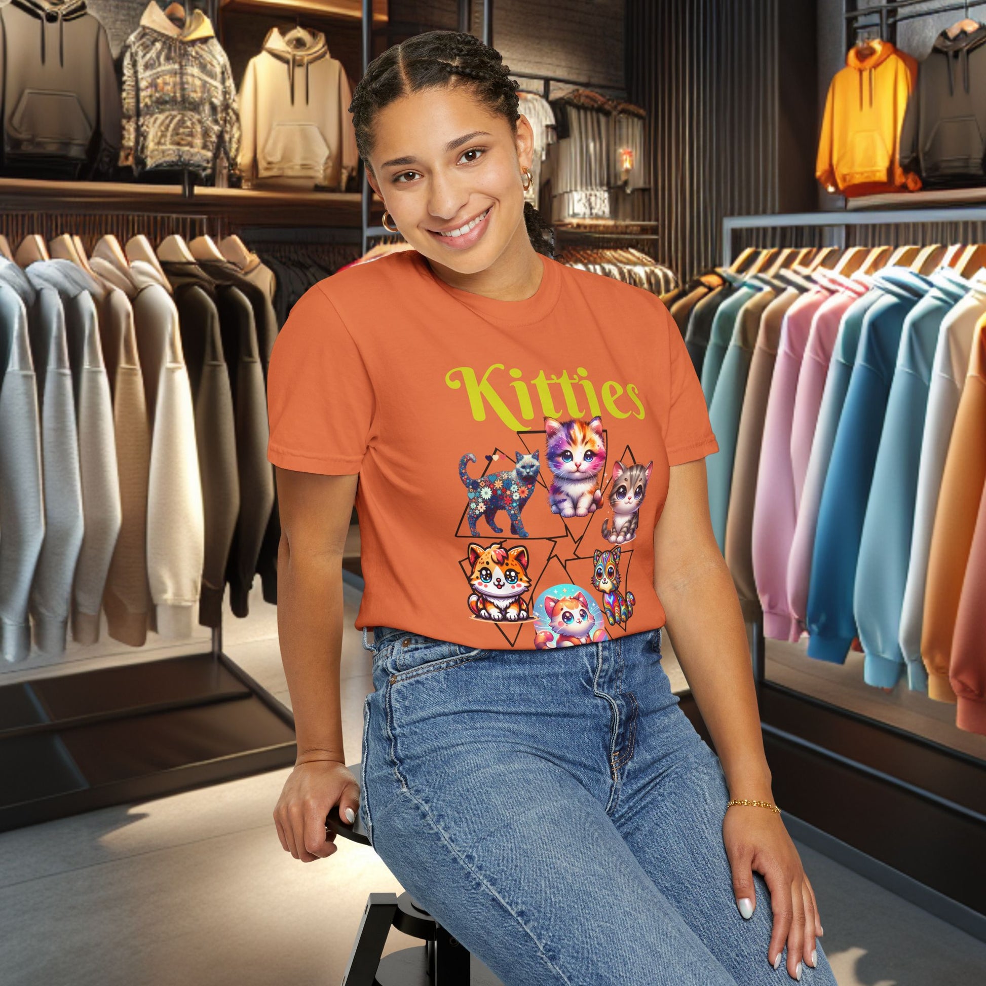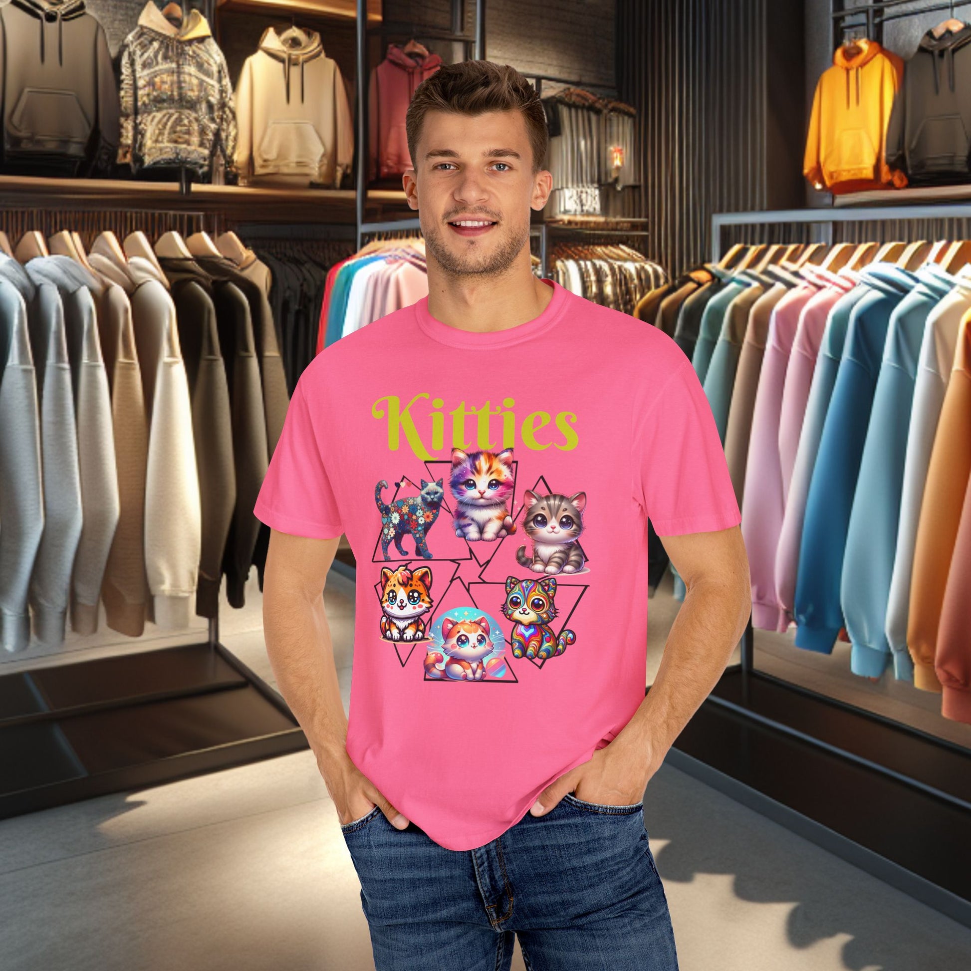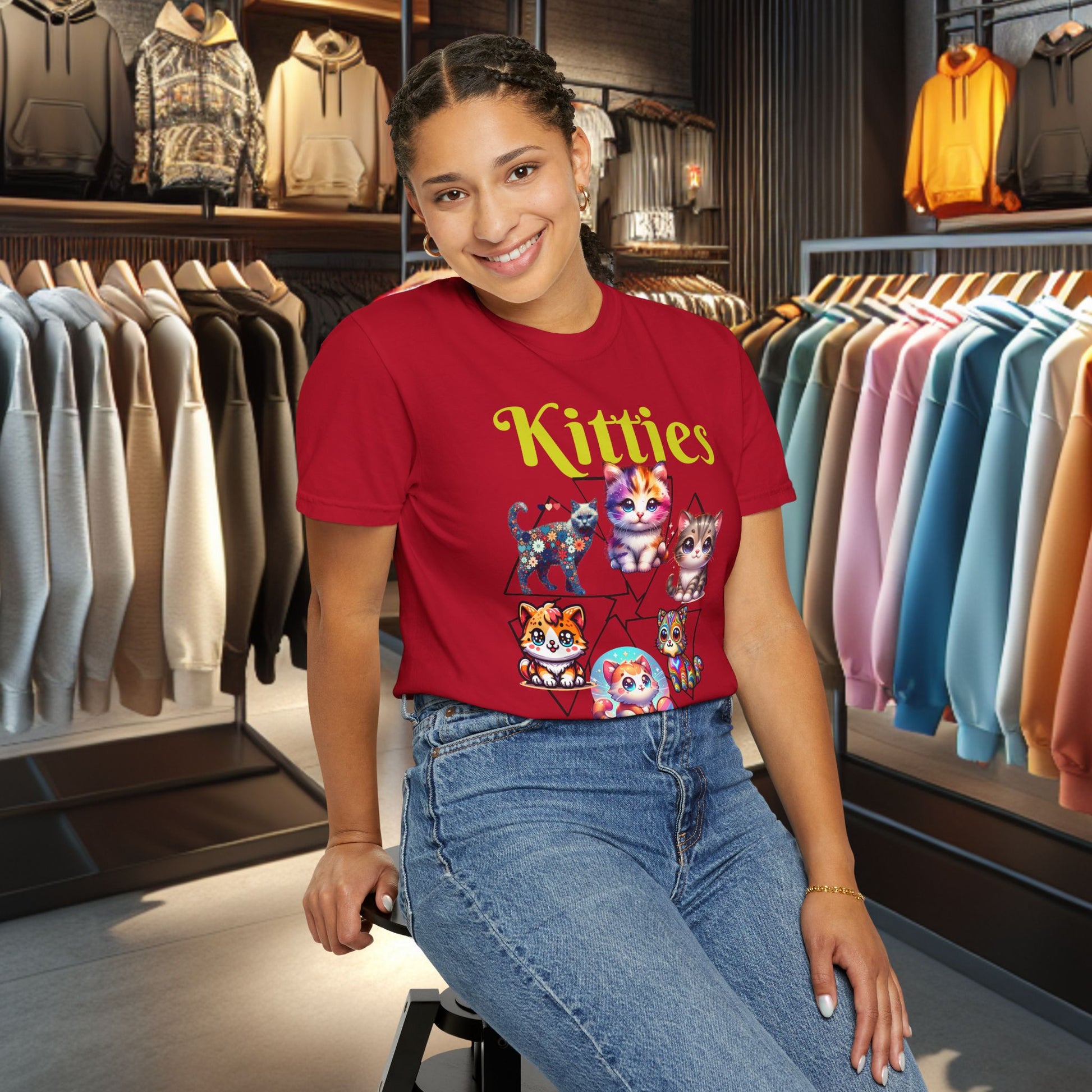 This Kitties Unisex T-shirt is the perfect gift for cat lovers, featuring cute cats. The relaxed fit and soft garment-dyed fabric provide long-lasting comfort. Ideal for cat enthusiasts looking for a unique and stylish wardrobe addition. Perfect for celebrating National Cat Day or as a birthday gift for a feline-loving friend.