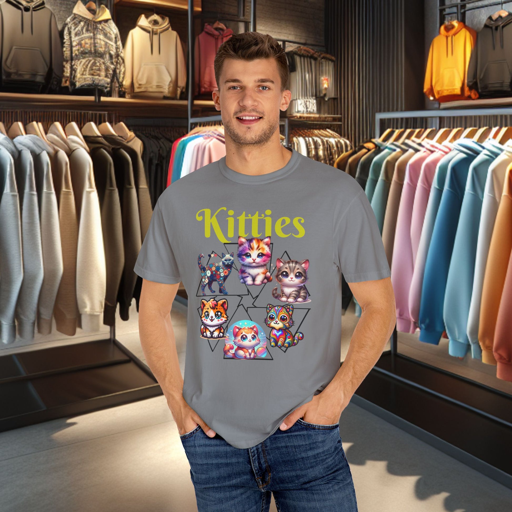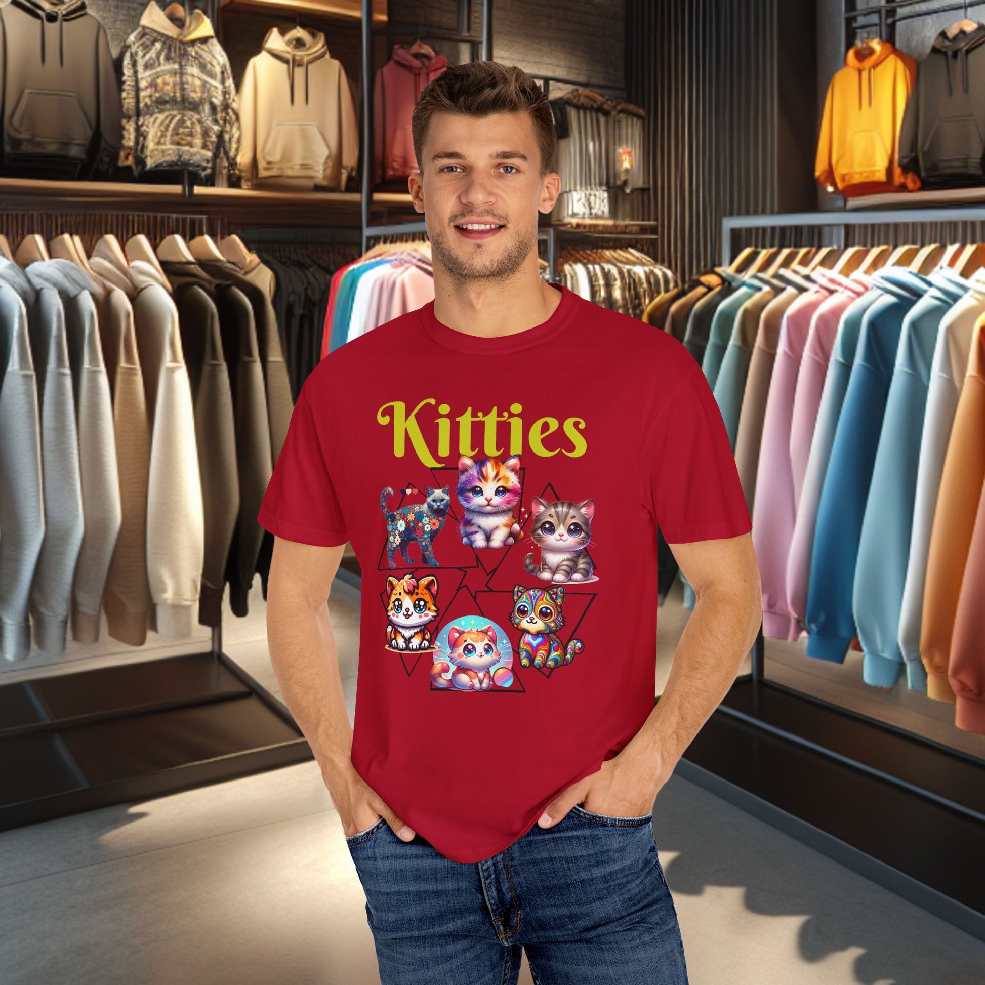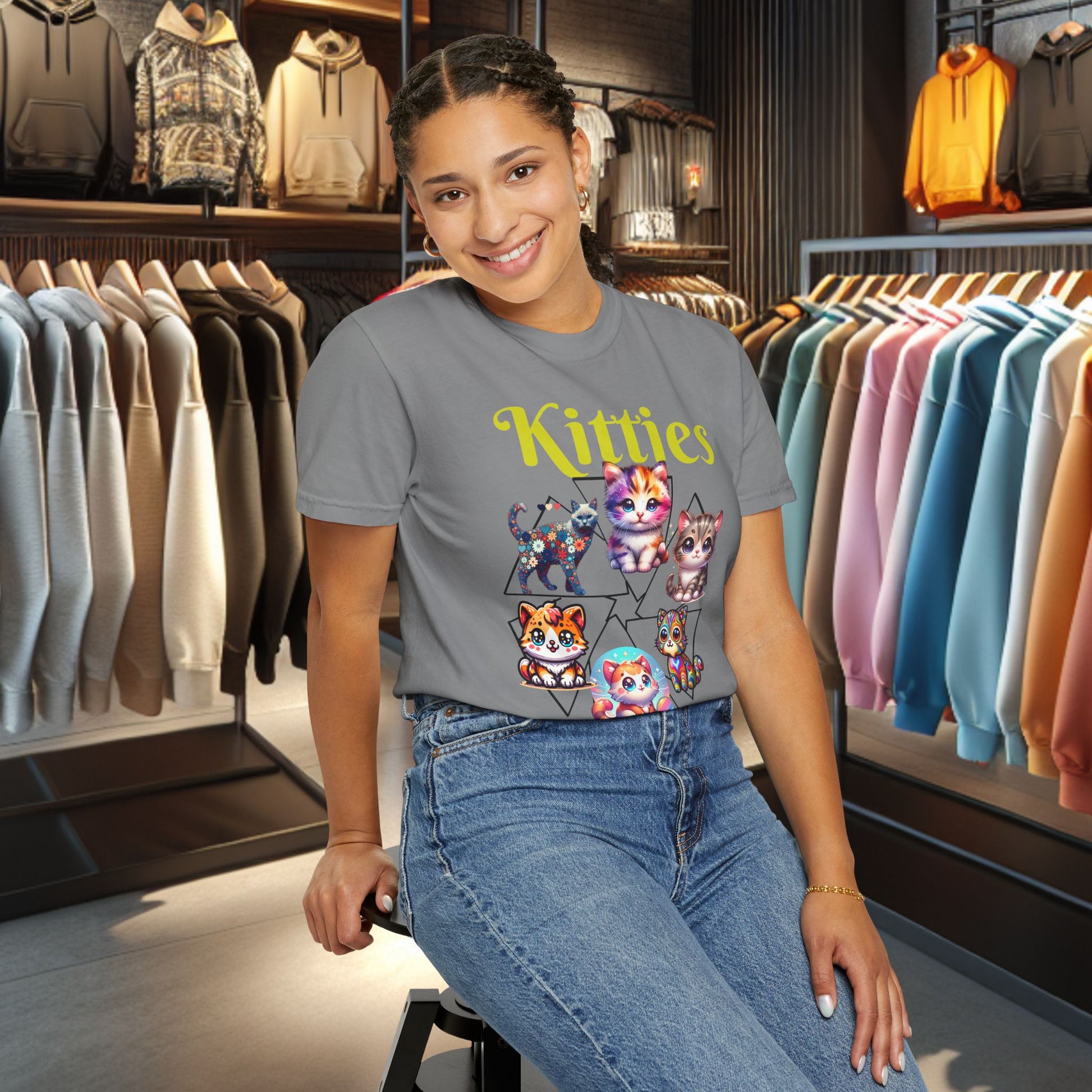 This Kitties Unisex T-shirt is the perfect gift for cat lovers, featuring cute cats. The relaxed fit and soft garment-dyed fabric provide long-lasting comfort. Ideal for cat enthusiasts looking for a unique and stylish wardrobe addition. Perfect for celebrating National Cat Day or as a birthday gift for a feline-loving friend.