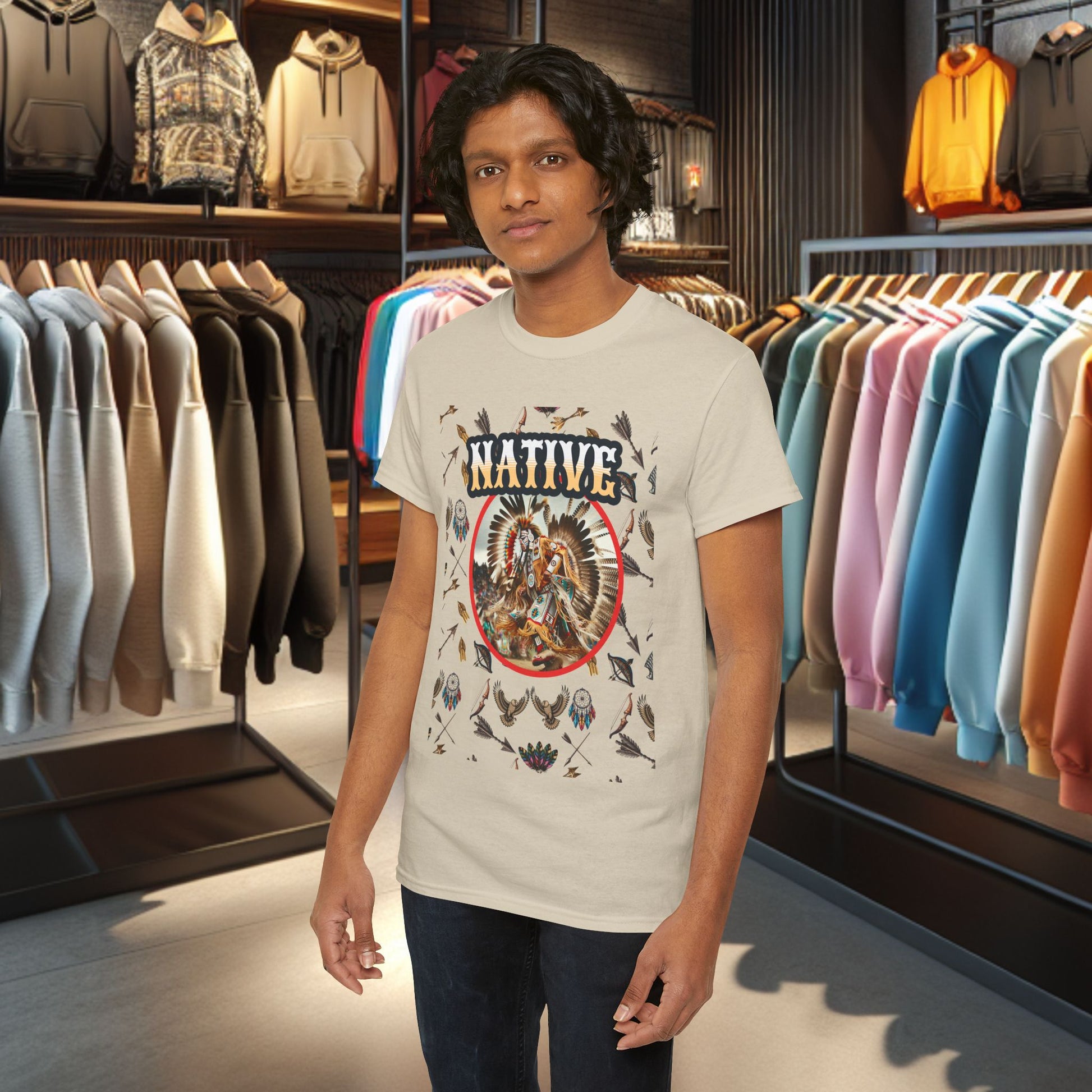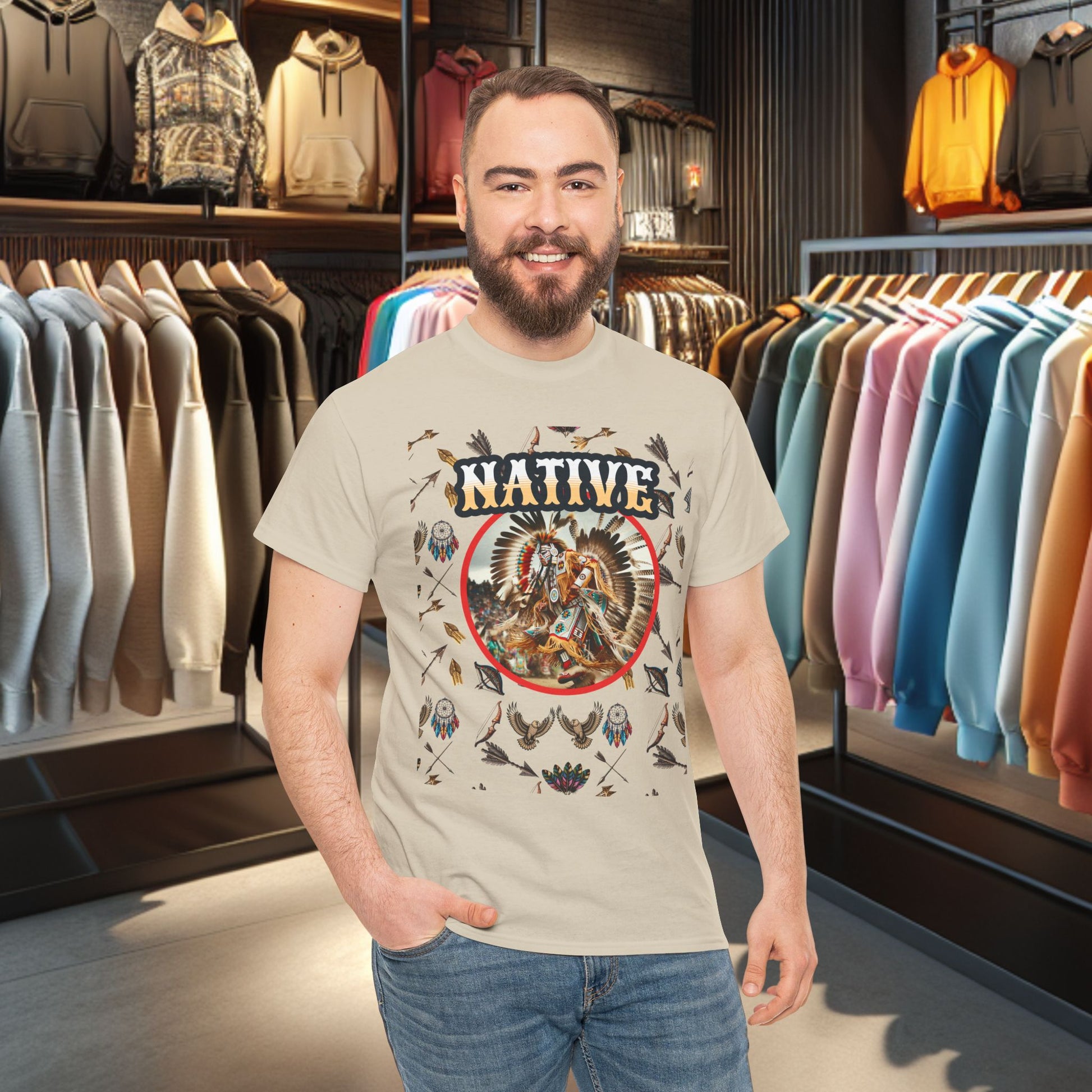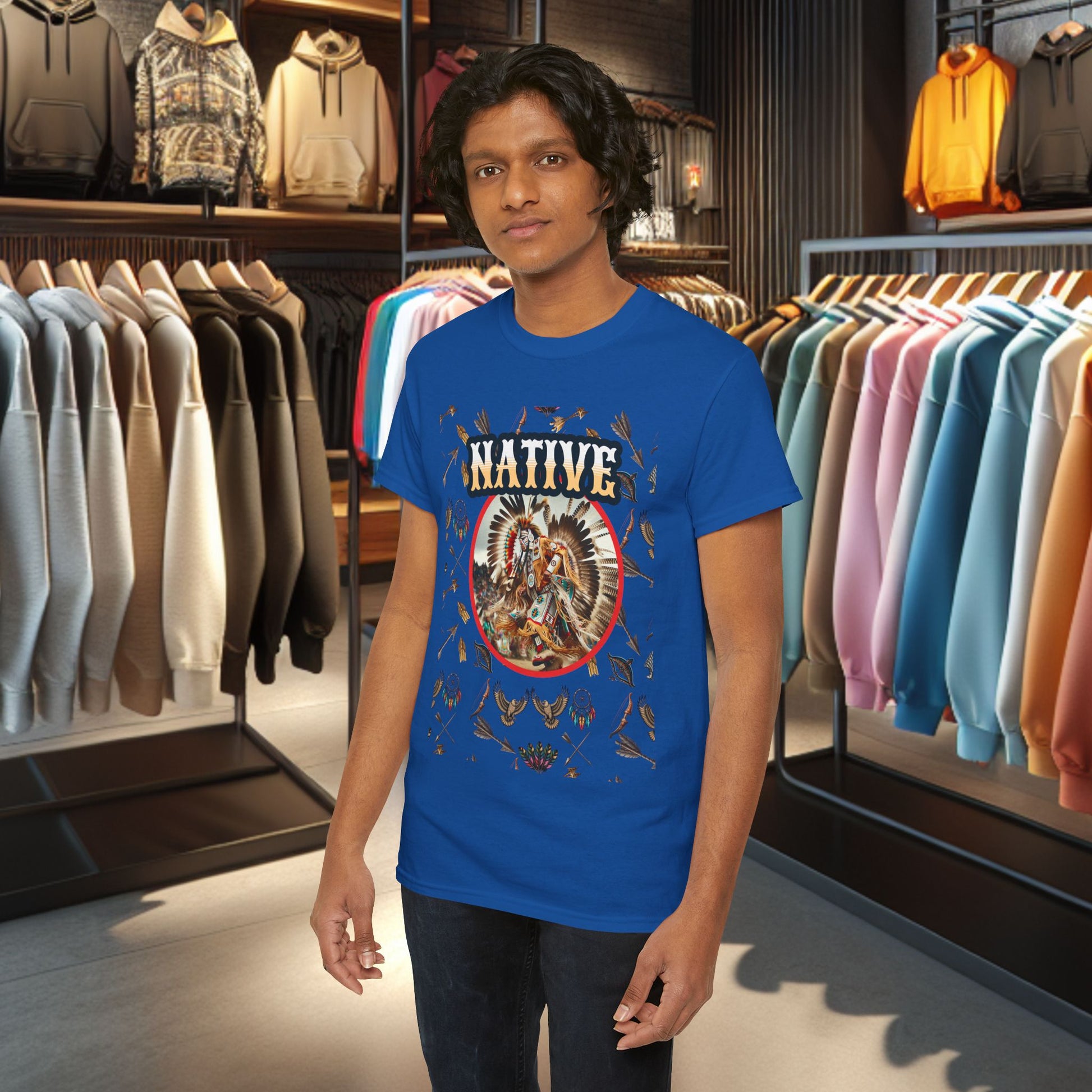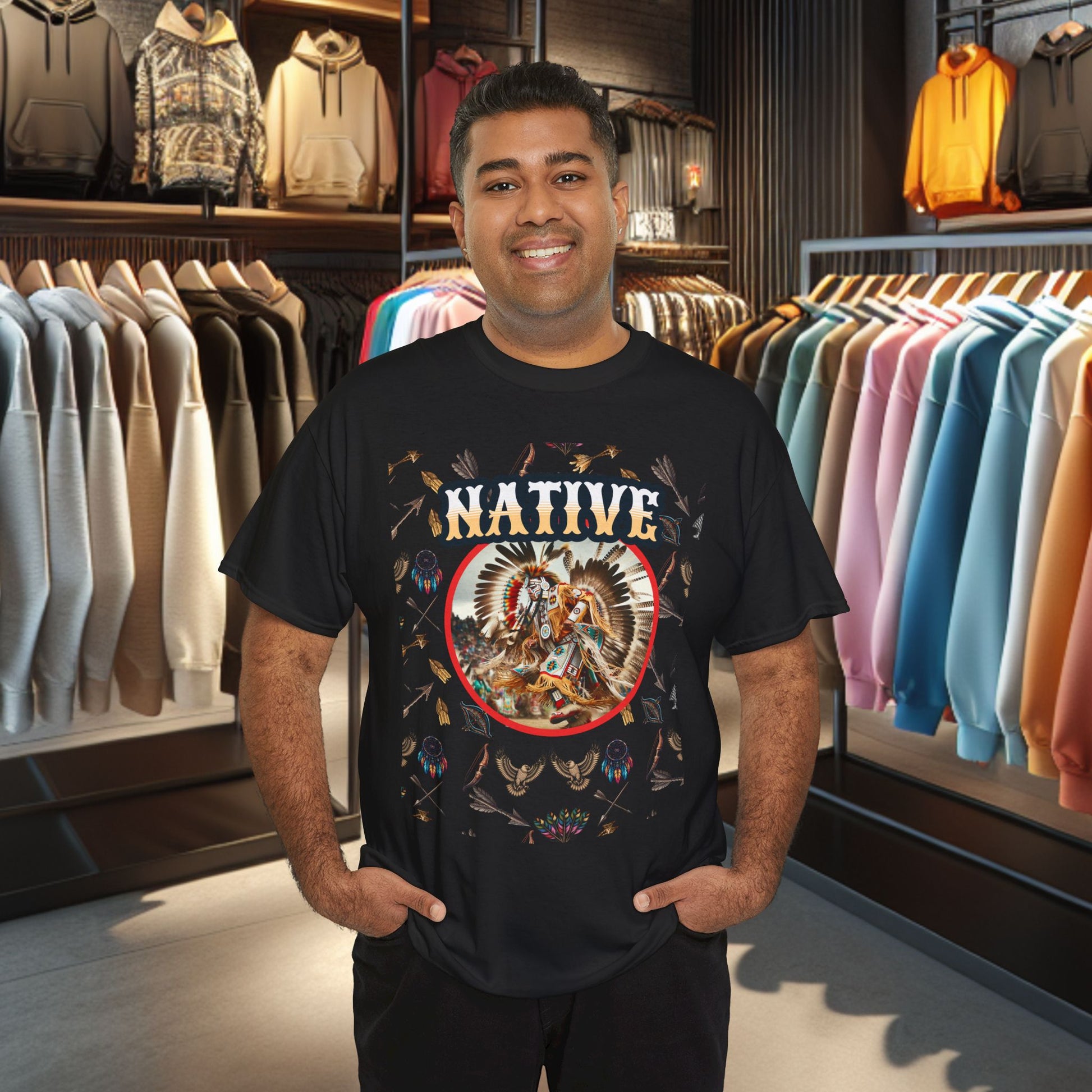 This Men's American Native Dancer Graphic Tee exudes a cultural and artistic vibe, perfect for those who appreciate indigenous art and history. It can be a great addition to a casual outfit for a laid-back and artistic look. Ideal for individuals celebrating Native American culture or looking for unique graphic tees to express their style.