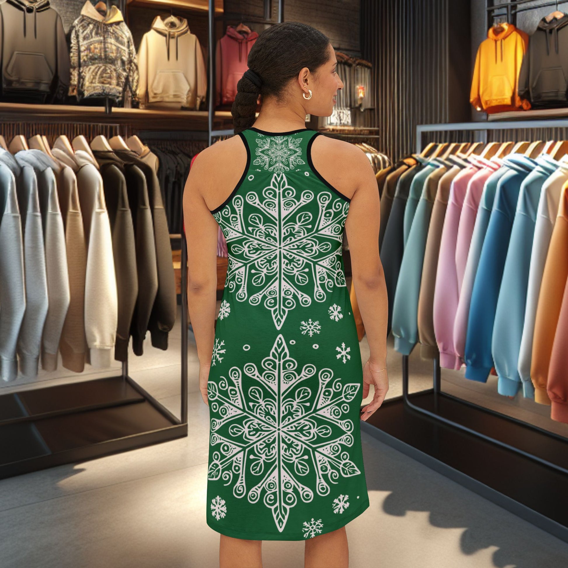 Racerback Dress — Festive Green Snowflake All-Over Print