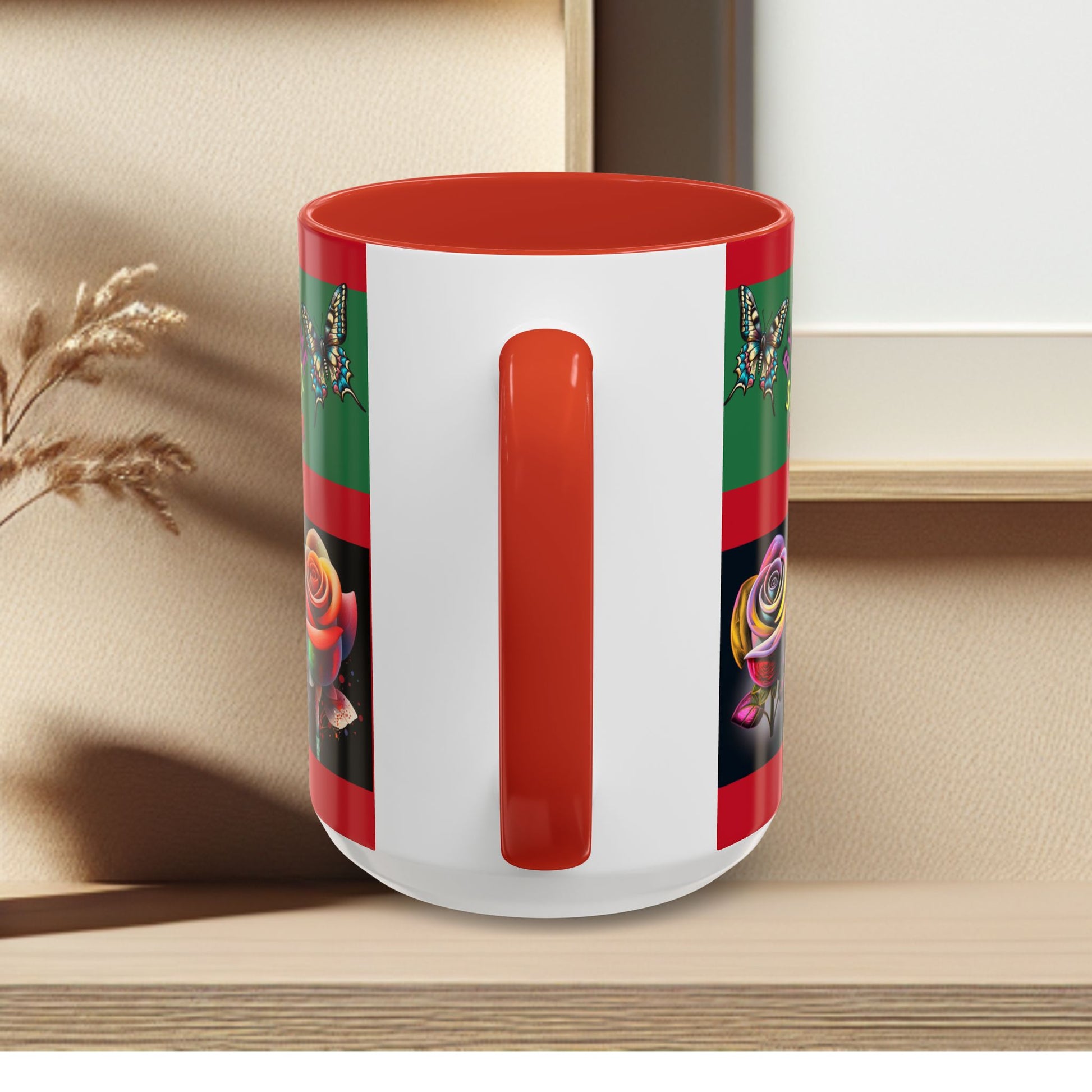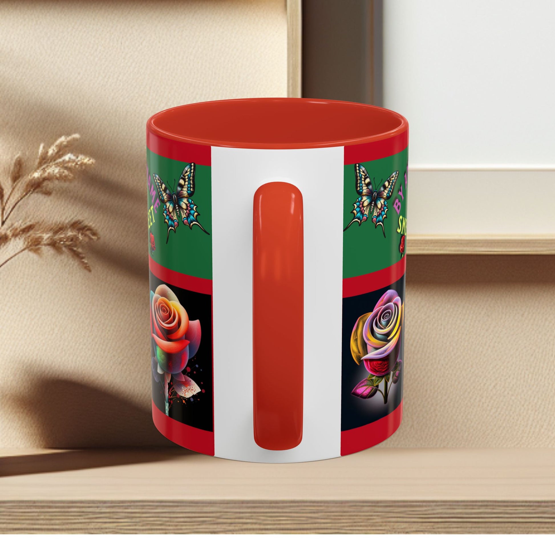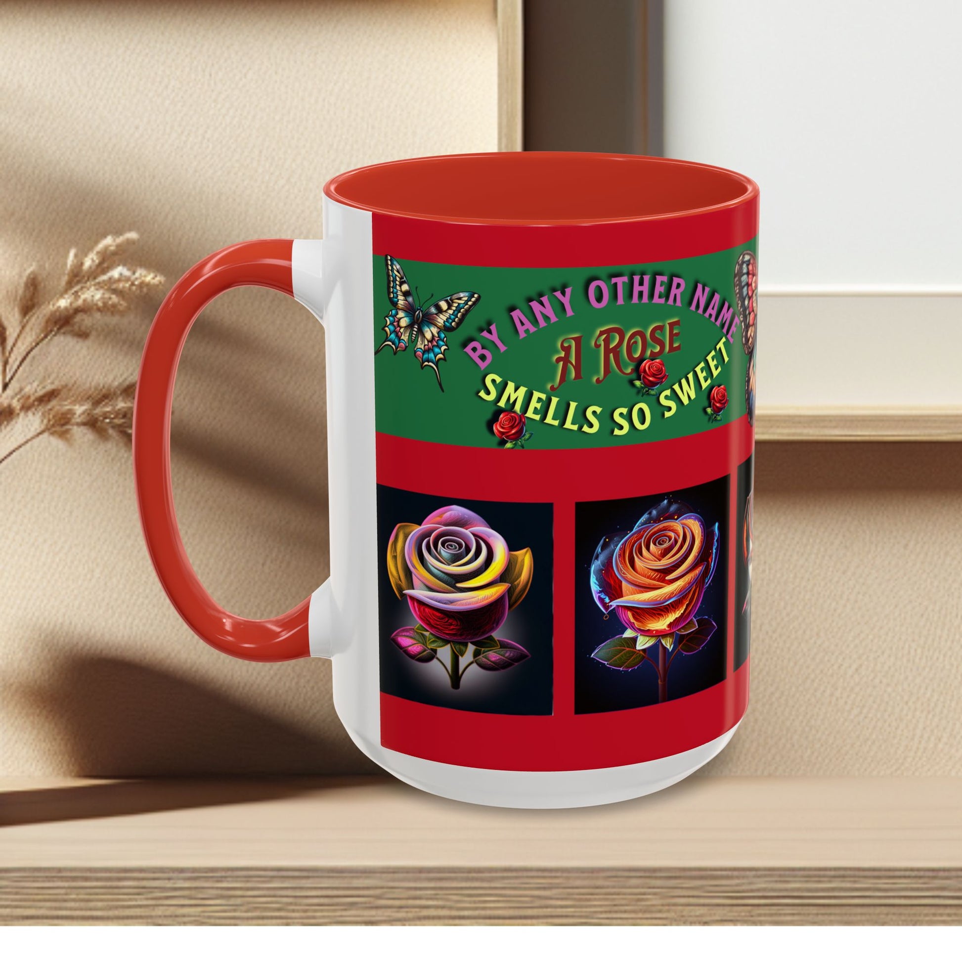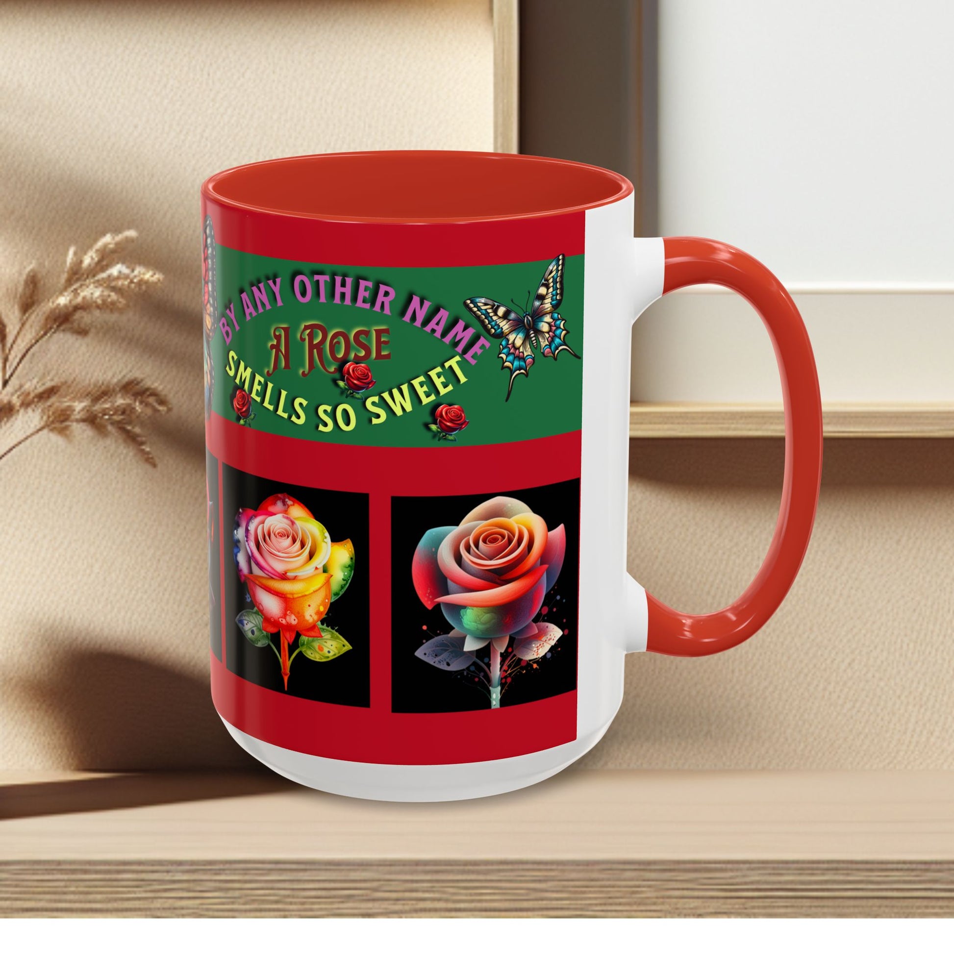 Red Mug - Floral Butterfly Accent Coffee Mug - 'By Any Other Name A Rose Smells So Sweet'