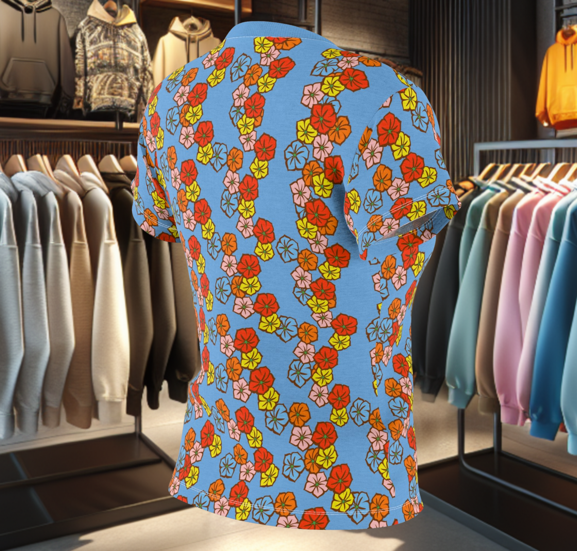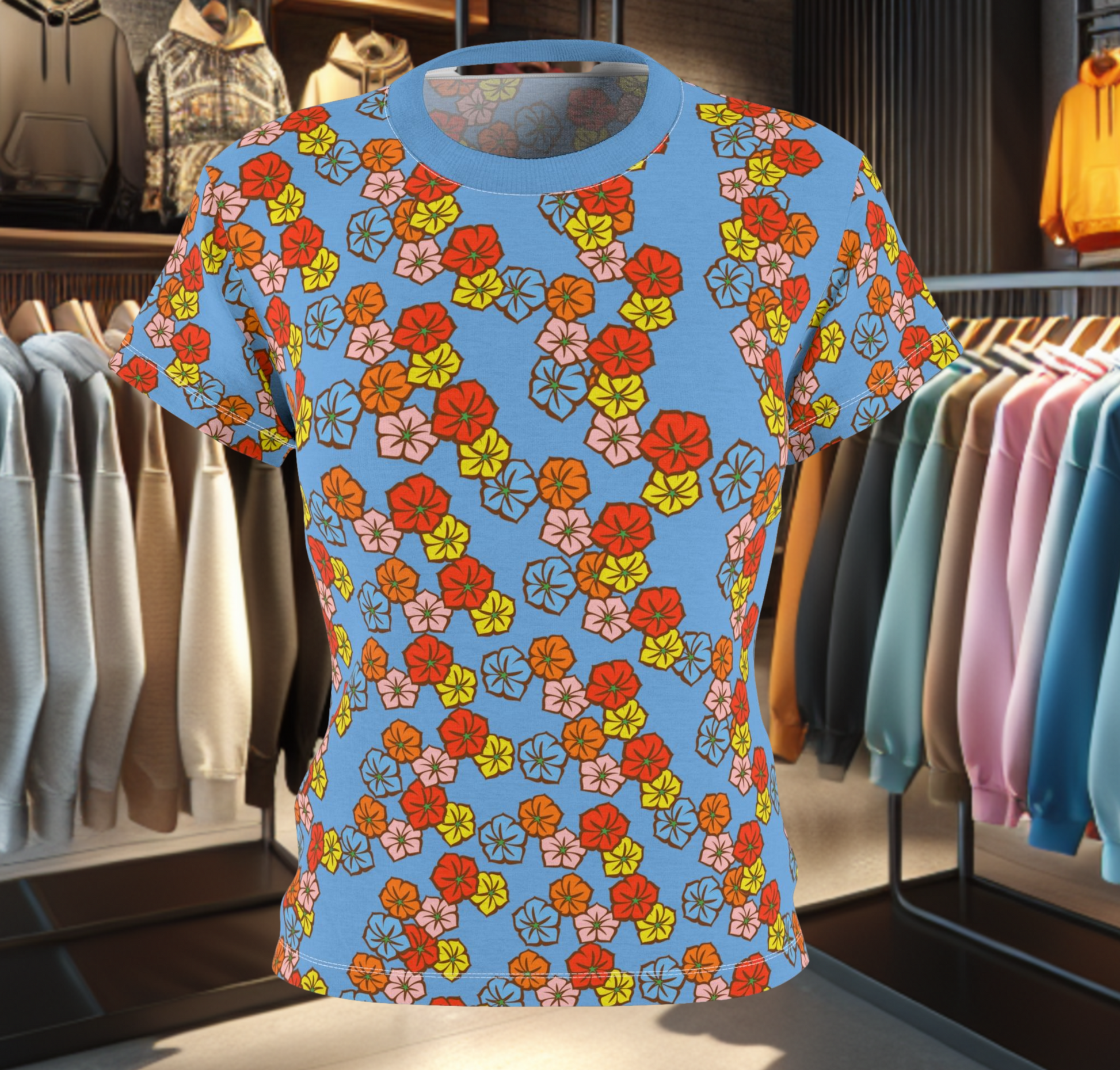 Women's Blue Tee - Floral Print, Cute Summer Top, Festival Fashion