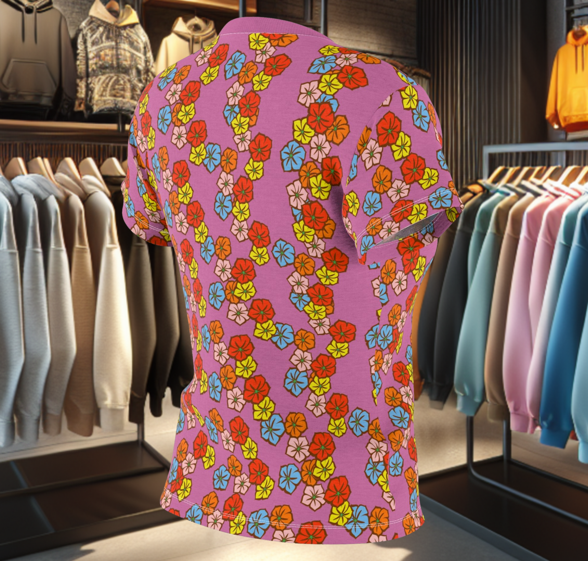 Women's Pink Tee -Floral Print, Cute Summer Top, Festival Fashion
