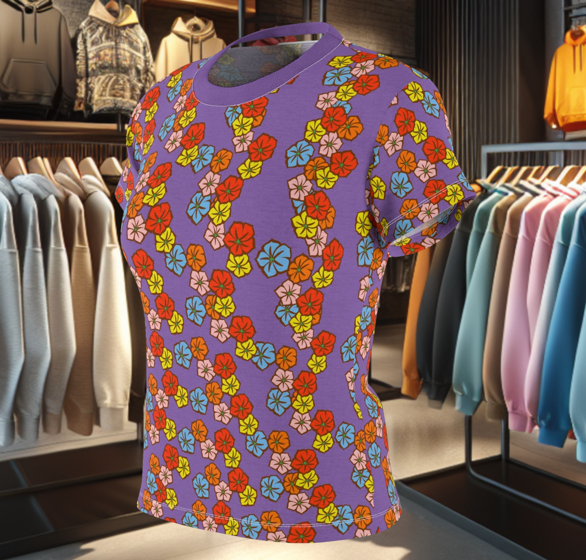 Women's Purple Tee - Floral Print, Cute Summer Top, Festival Fashion