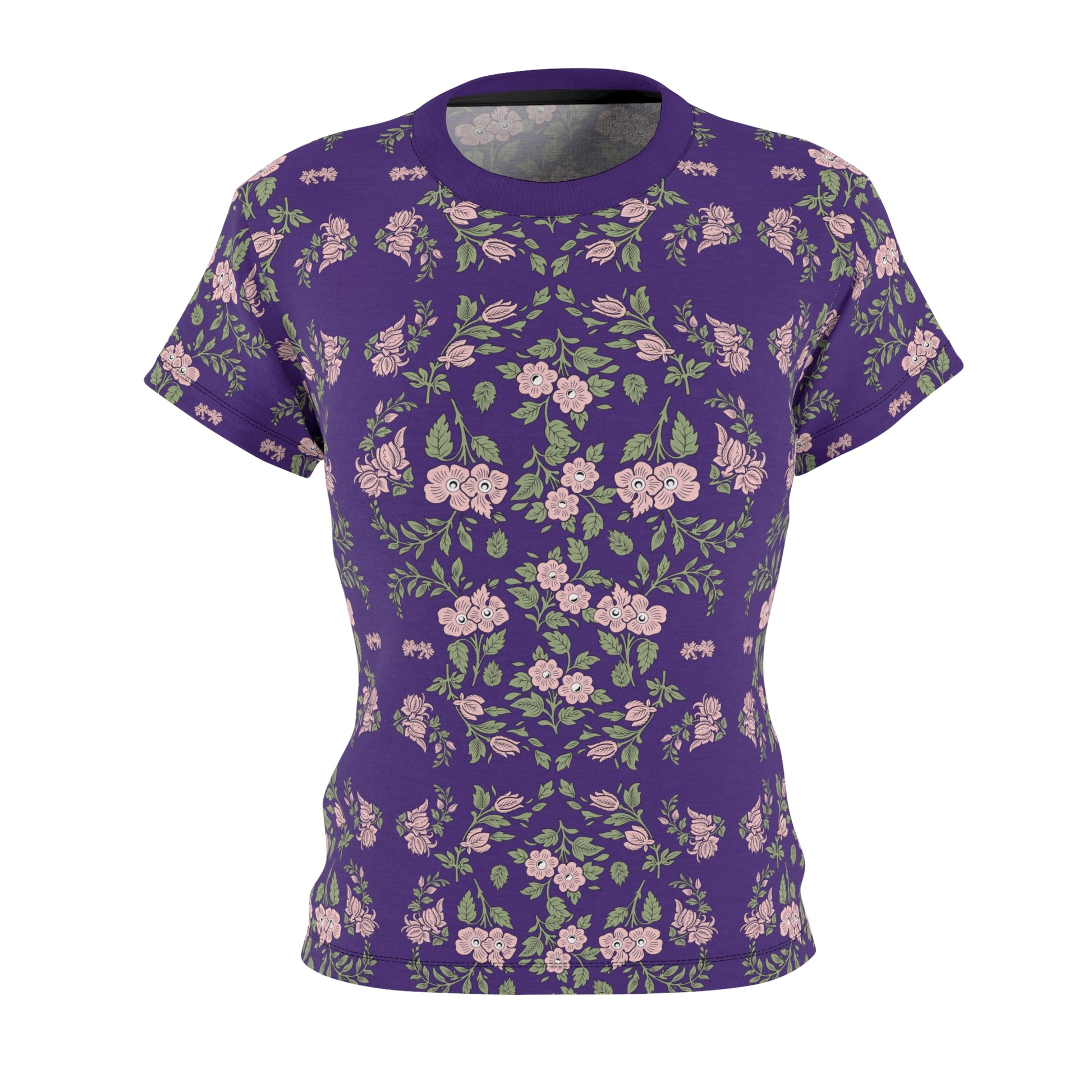 Women's Tee - Purple with a pink floral print